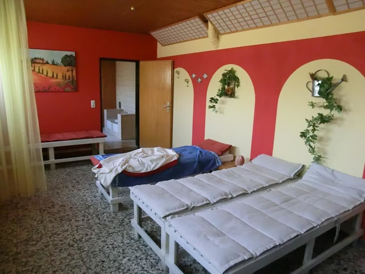 3 Schlafräume, einer mit 1 Doppelbett, einer mit 2 Einzelbetten und einer mit 1 Etagenbett.