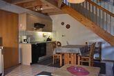 Das in Holzbauweise gebaute Ferienhaus Typ B1 ist ein 2-Zimmer-Maisonette-Appartementhaus für max. 4 Personen (ca. 50 qm, 1 Kinderbett für ein Kleinkind bis 2 Jahre kann zugebucht werden).