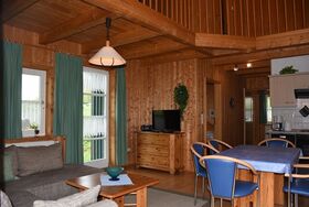 Das in Holzbauweise gebaute Ferienhaus Typ A2 ist ein 3-Zimmer-Maisonette-Appartementhaus für max. 6 Personen (ca. 75 qm).