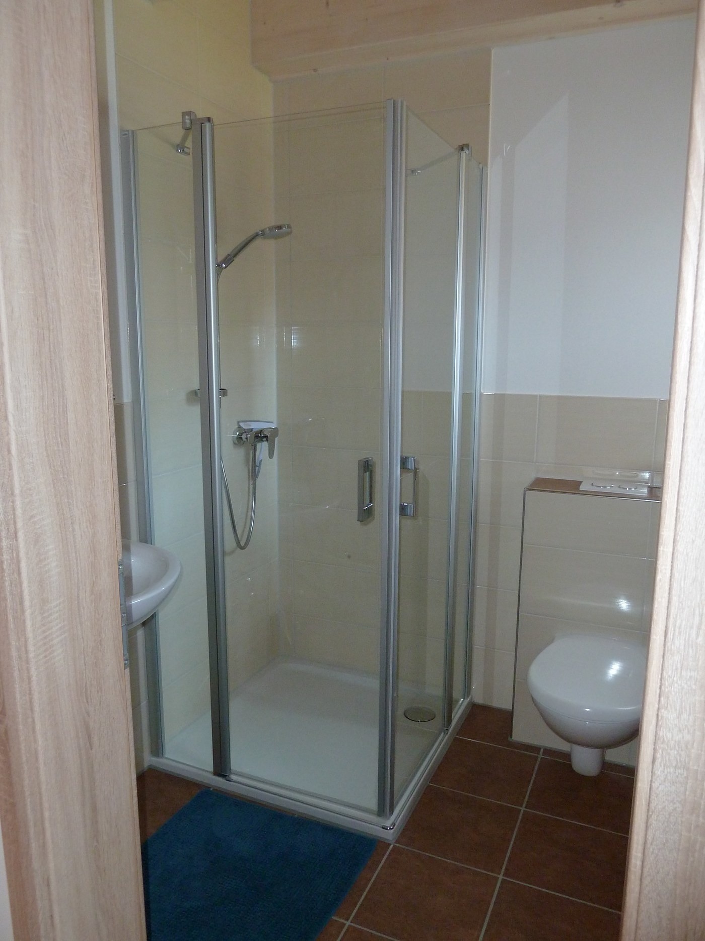 Duschbad/WC, ein Schlafzimmer mit Doppelbett, kleiner Flur, Abstellraum, Ausgang zur möblierten Terrasse.