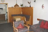 1 gemütliches Wohn-/Esszimmer mit Essgruppe, Polstersitzgruppe mit Schlafcouch, TV, Telefon, Radio mit CD und WLAN-Internetanschluss