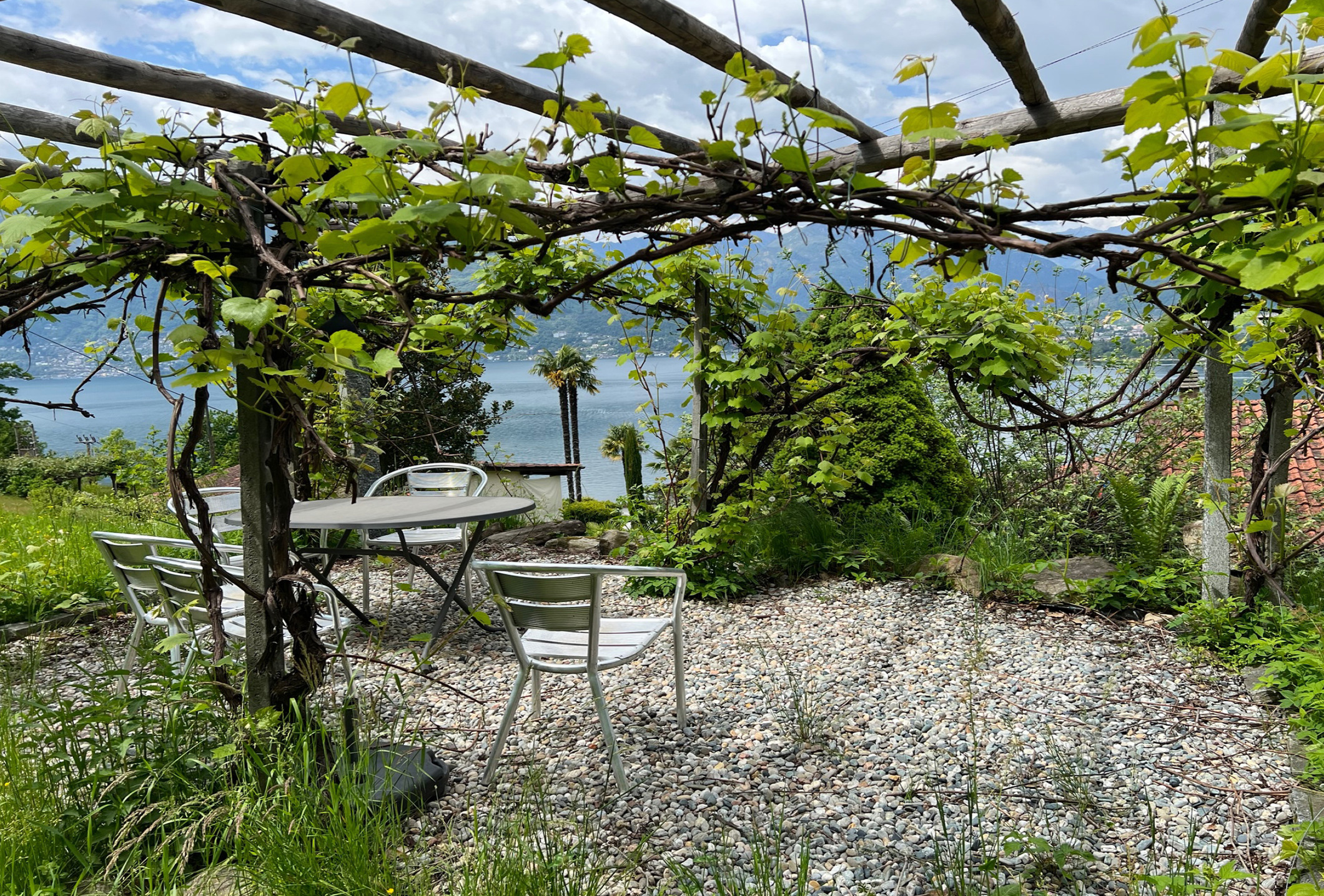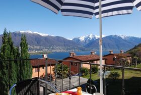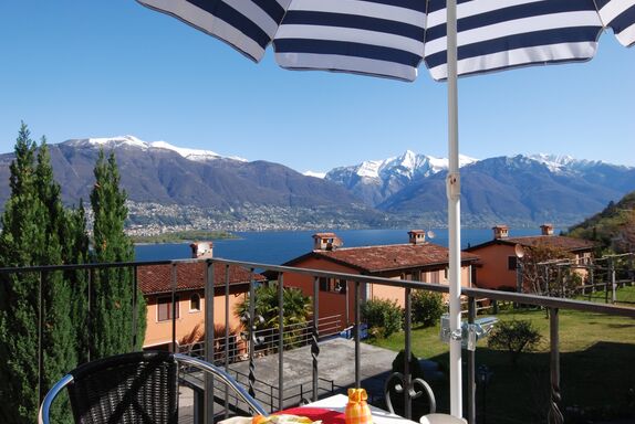 Balkon: Mit Sitz- und Essgelegenheit und herrlicher Sicht auf den Lago Maggiore.
