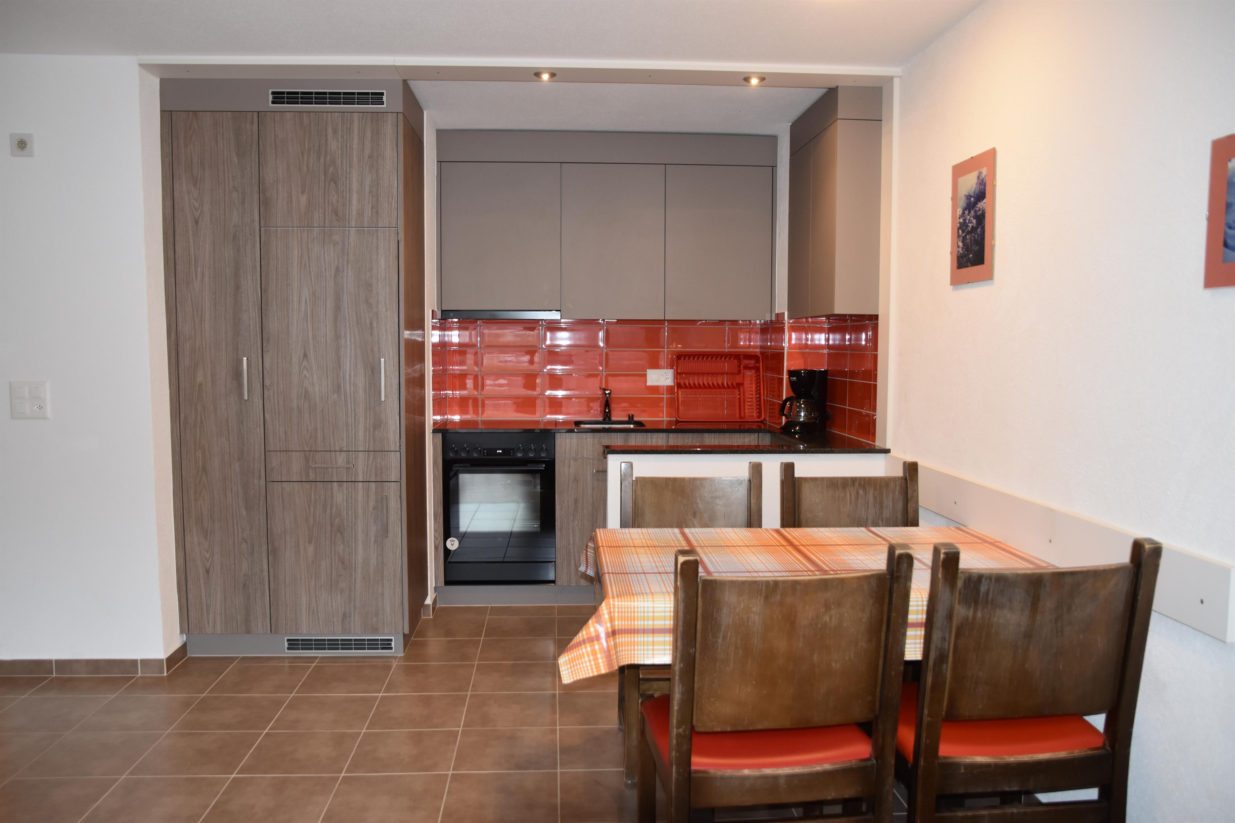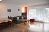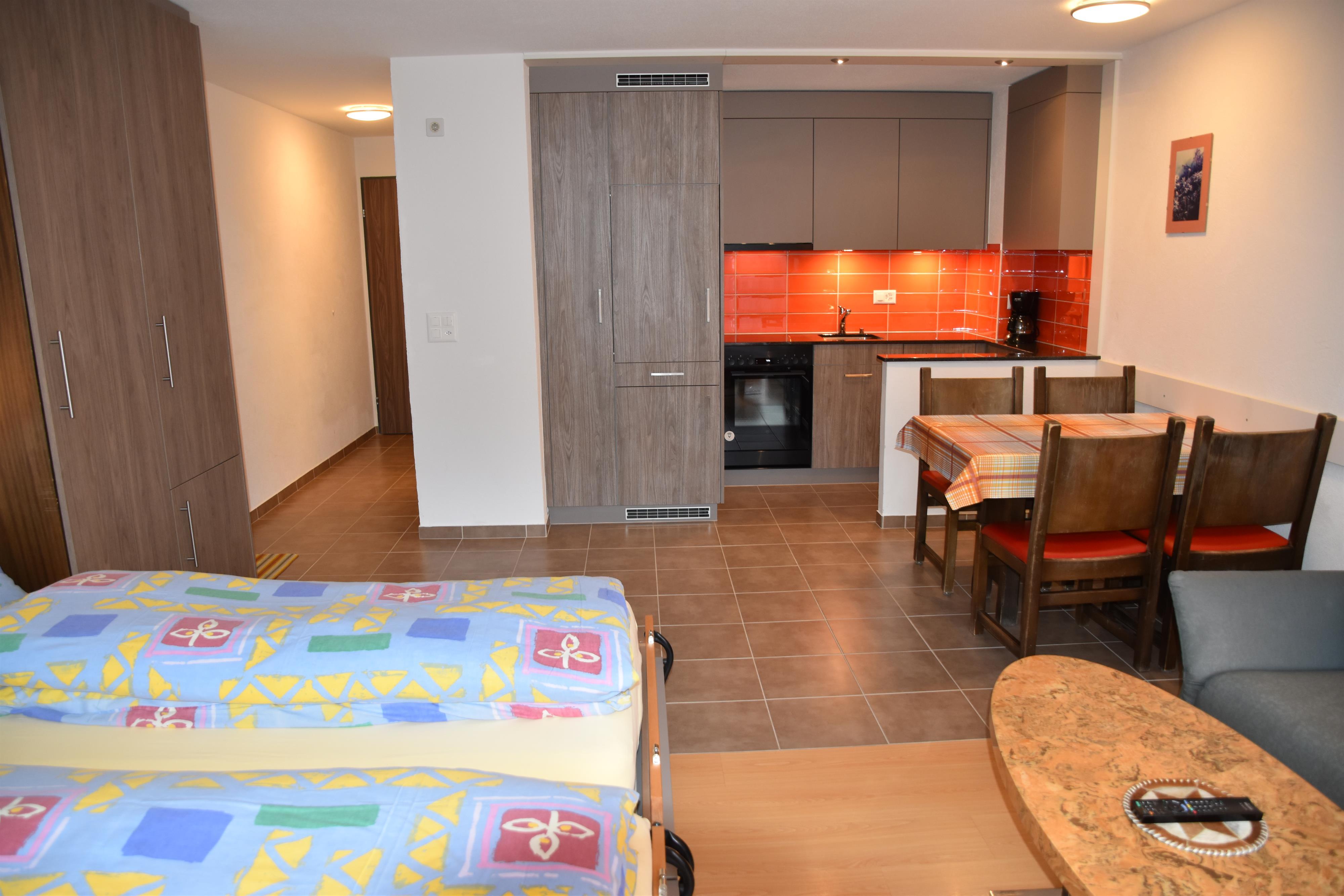 Das helle Appartement (36 m2) befindet sich in der 3. Etage. Es verfügt über 2 Wandschrankbetten und ein Couch Bett im Wohnbereich. Dusche/WC. Bett- und Frotteewäsche sind vorhanden und im Preis inbegriffen.