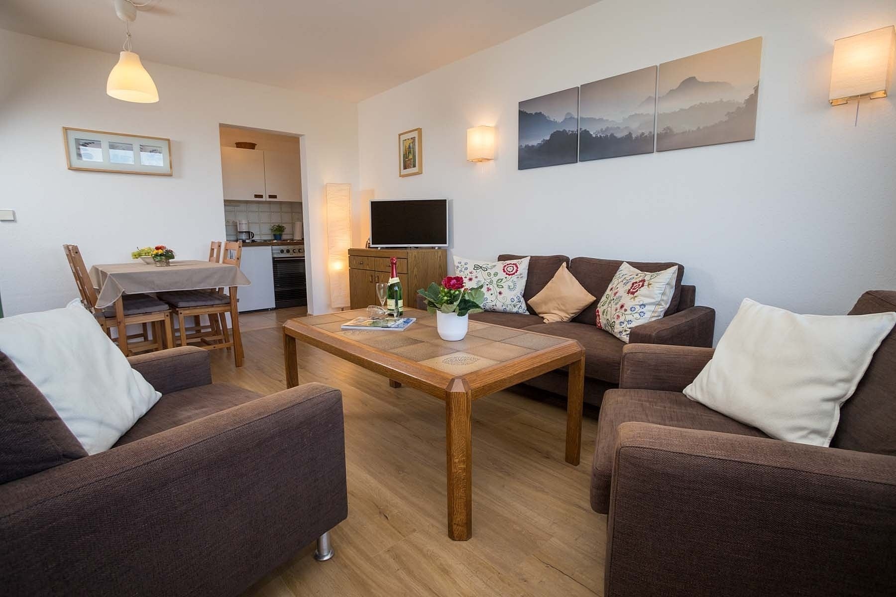 Sie wohnen in einem 2-Zimmer-Appartement des Ferienpark Oberallgäu im 2. Stock mit ca. 51 m² Wohnfläche und Platz für max. 4 Personen.
