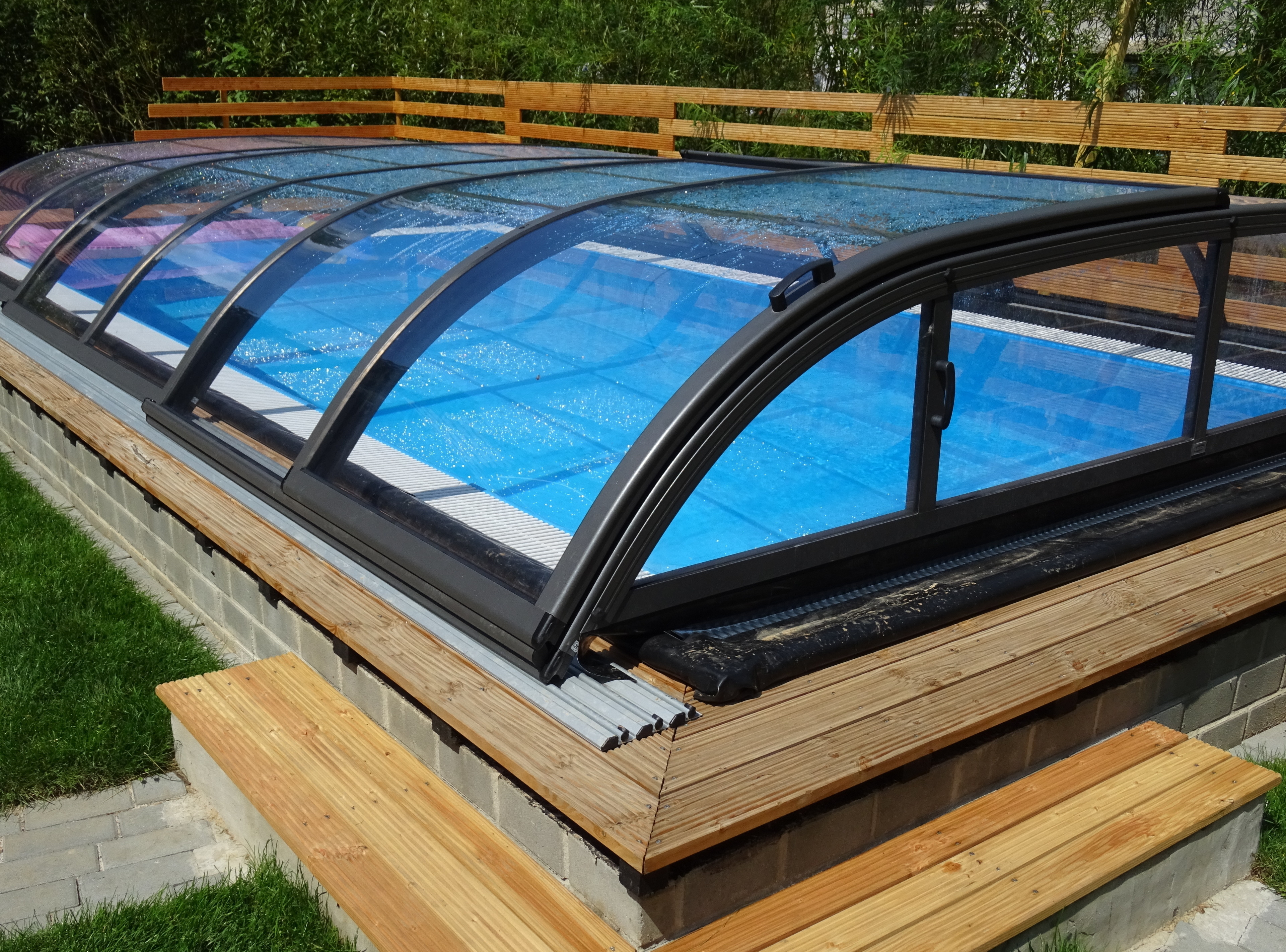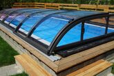 Überlauf-Pool-Komplettset mit Überdachung, Schwimmbecken 3,00 x 6,00 x 1,50m und Pool-Gegenstromanlage.