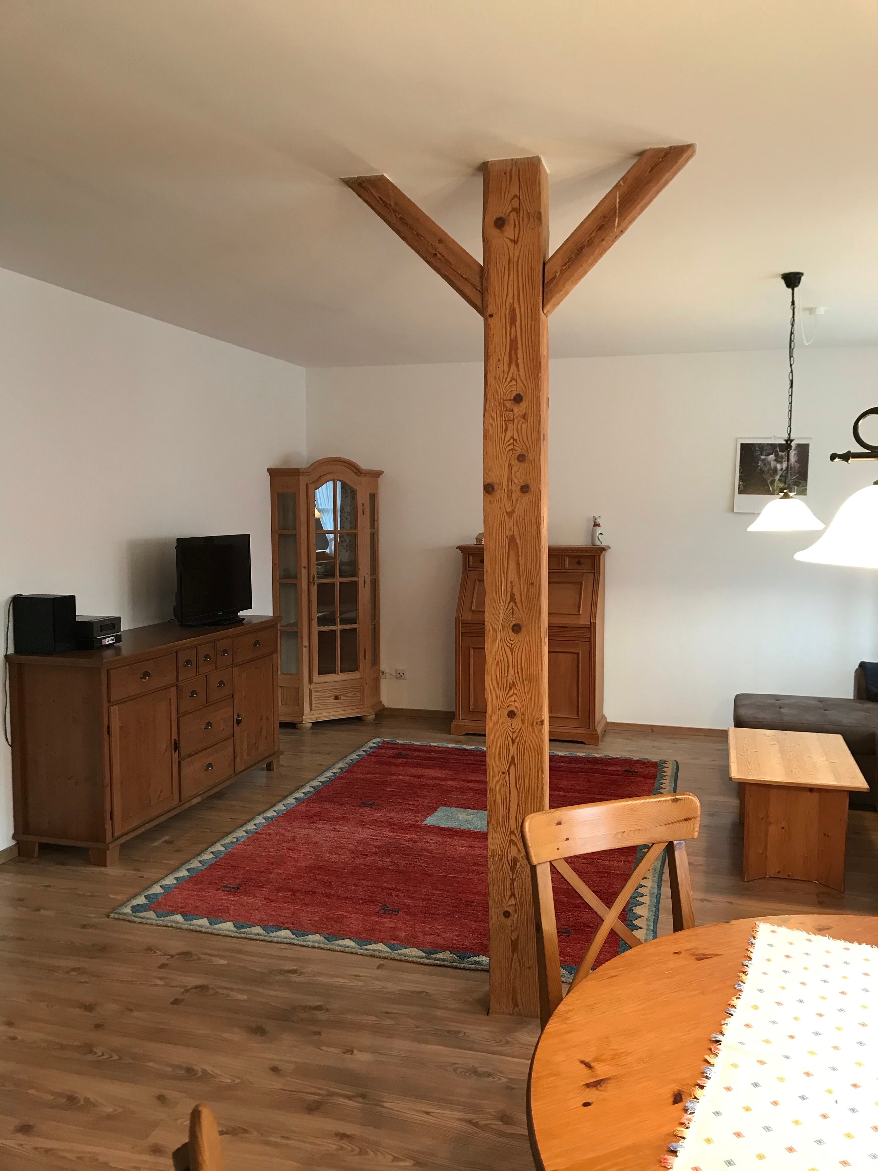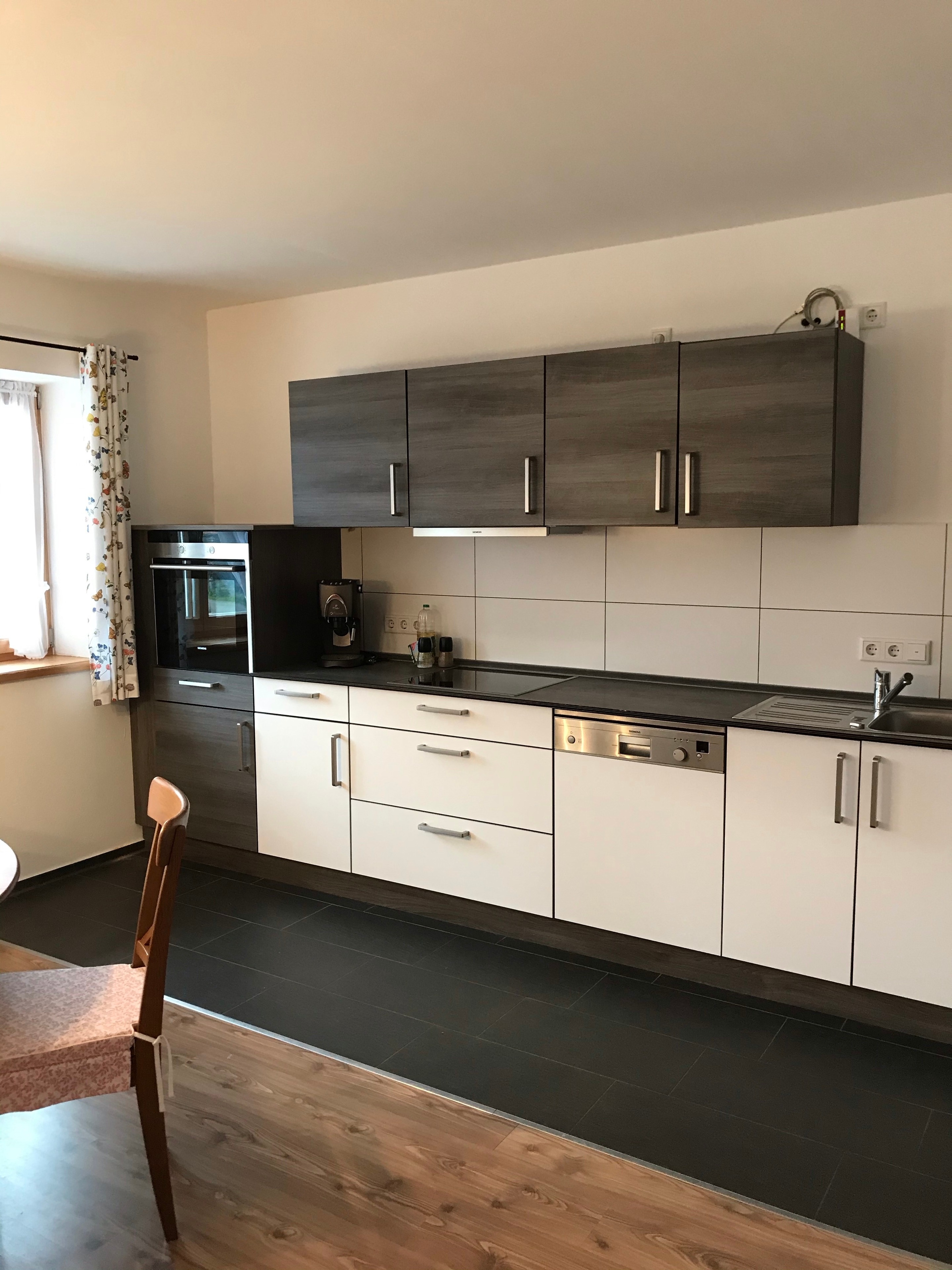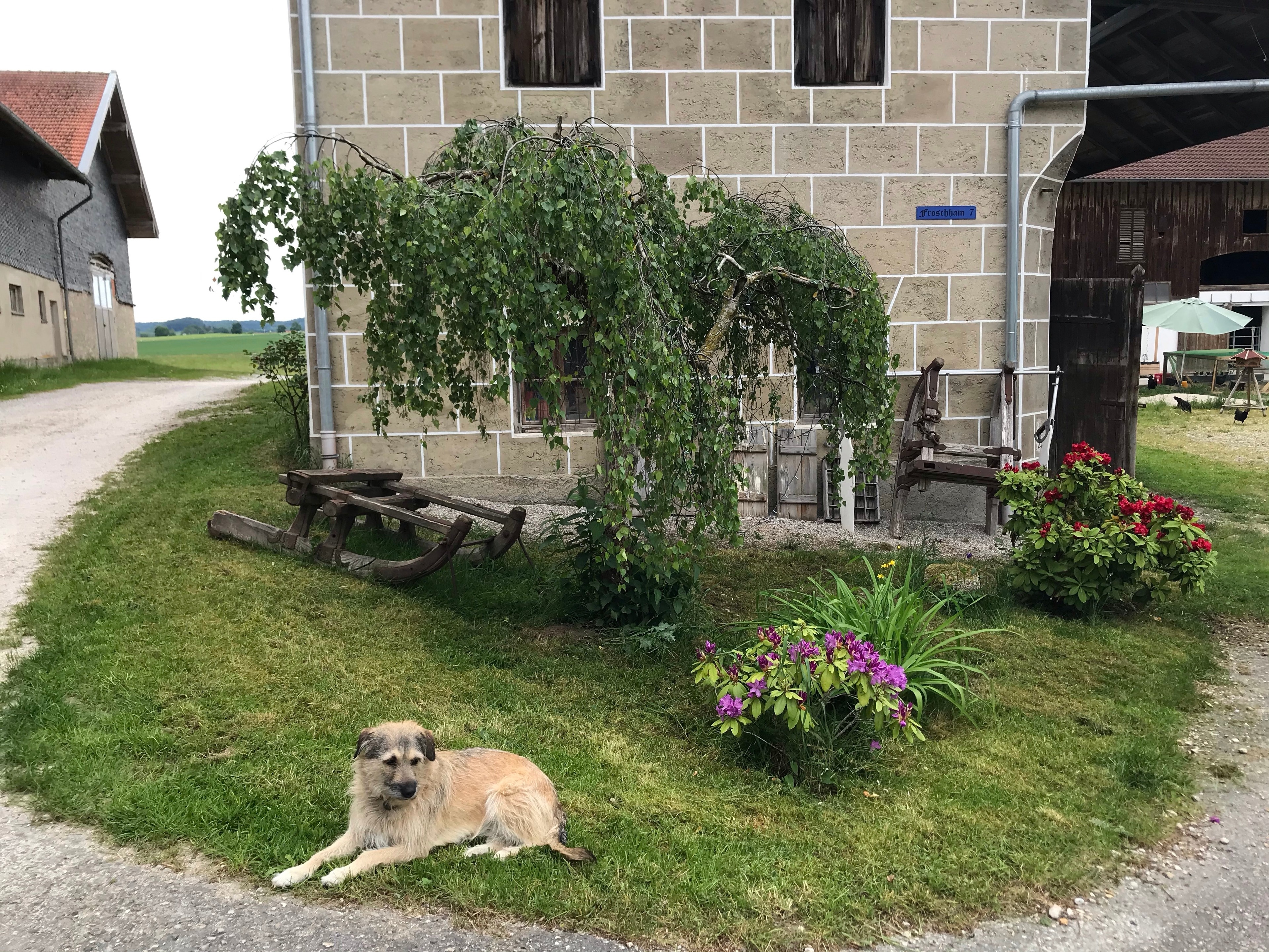 Unser Bauernhof liegt in Froschham, einem ruhigen Weiler umgeben von Feldern und Wiesen ca. 1 KM ausserhalb von Tittmoning. Hier wohnen neben uns ein Hund, Katzen, Hühner, Pferde und 2 Esel. Die ruhige, gemütliche Nichtraucherferienwohnung im 1. Stock, ist ausgestattet mit einer Wohnküche mit kompletter Einbauküche, Wohnzimmer mit Schlafcouch, einem Schlafzimmer mit Doppelbett und einem großzügigen Bad mit großer Dusche und Badewanne.