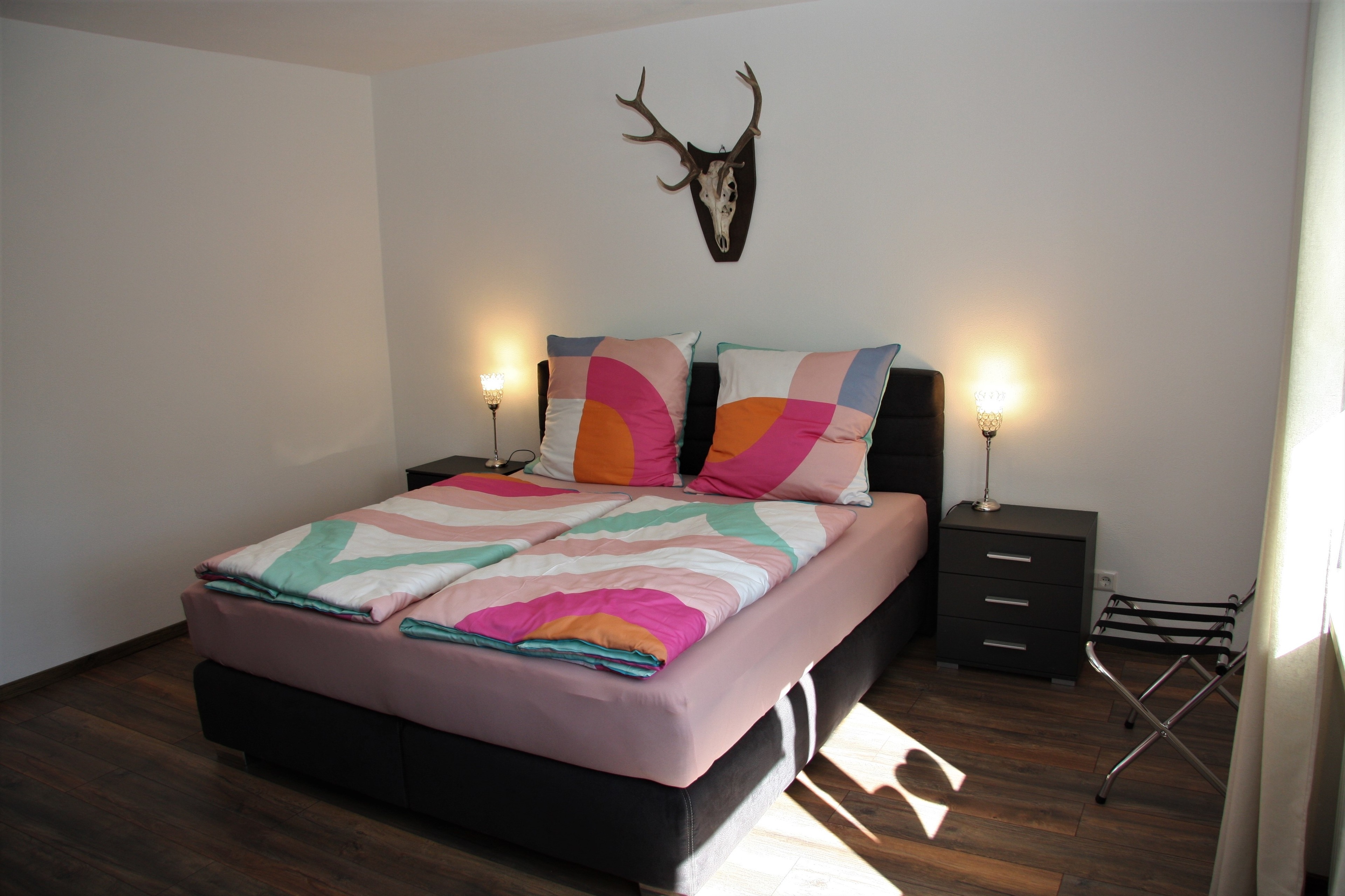 Maximalbelegung der Wohnung mit 5 Personen, wobei für den 5. Gast eine Schlafcouch/Gästebett im Wohn-/Essbereich genutzt werden kann.