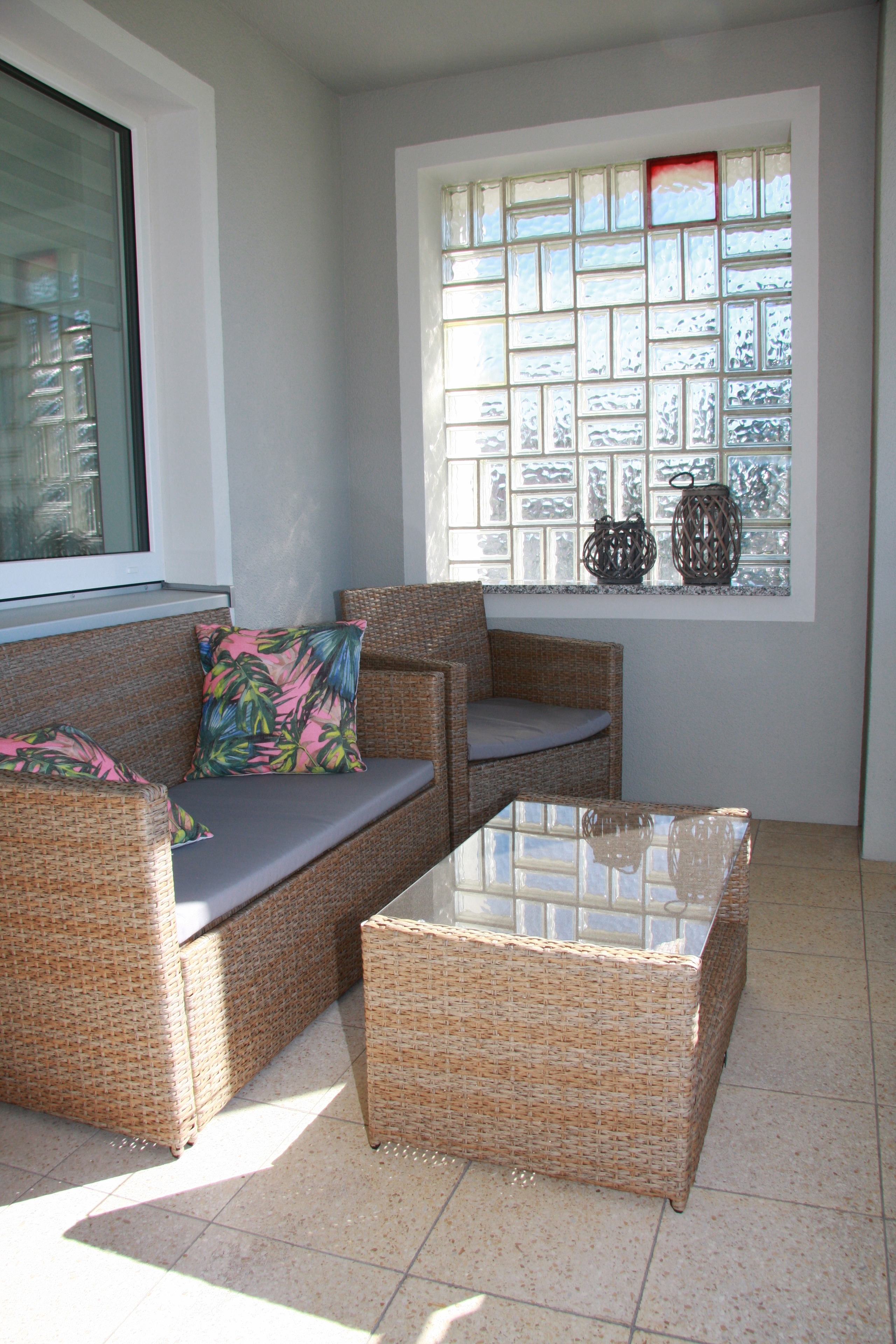 Wohnzimmer (Schlafcouch max. 1 Person, TV, Esstisch, Balkon),