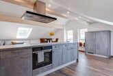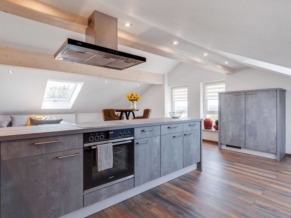 Ein modern eingerichtetes Bad, eine komplett eingerichtete Studioküche mit Cerankochfeld, Backofen, Dunstabzugshaube und Kühlschrank mit Gefrierfach sowie ein gemütlicher Wohn-Essbereich gehören selbstverständlich zum Komfort.