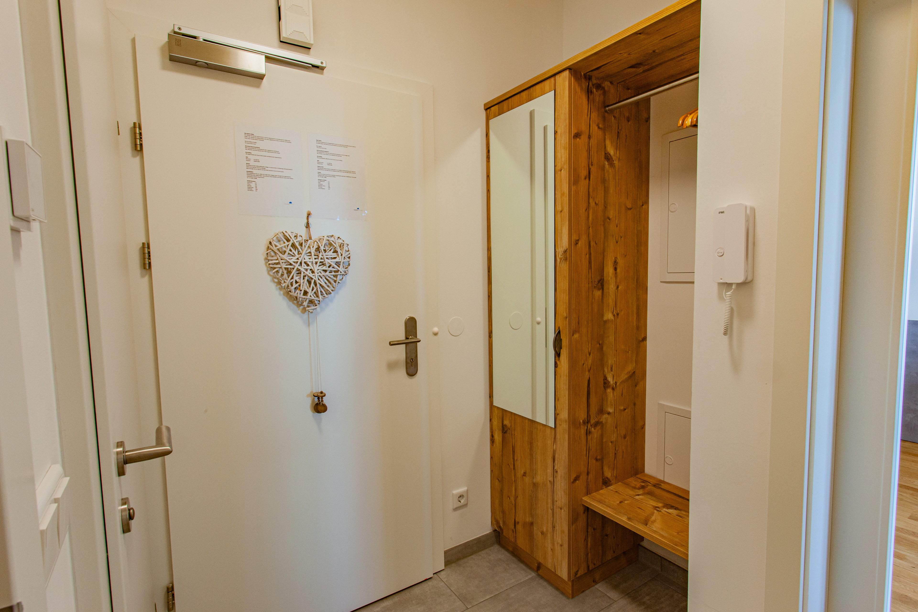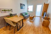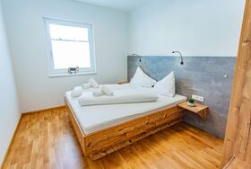 Die gemütliche, modern eingerichtete Wohnung für bis zu 4 Personen liegt im Obergeschoß eines neu errichteten Gebäudes und besteht aus einem Schlafzimmer, einer Wohnküche (Herd mit Backofen, Geschirrspüler, Toaster, Wasserkocher), einem Bad und einem großzügigen Balkon.