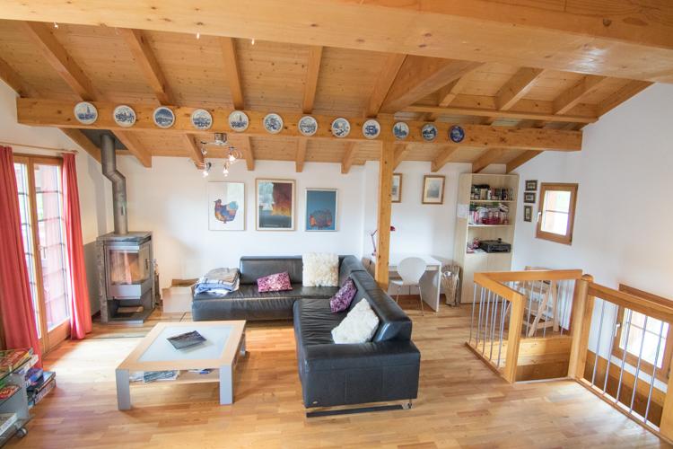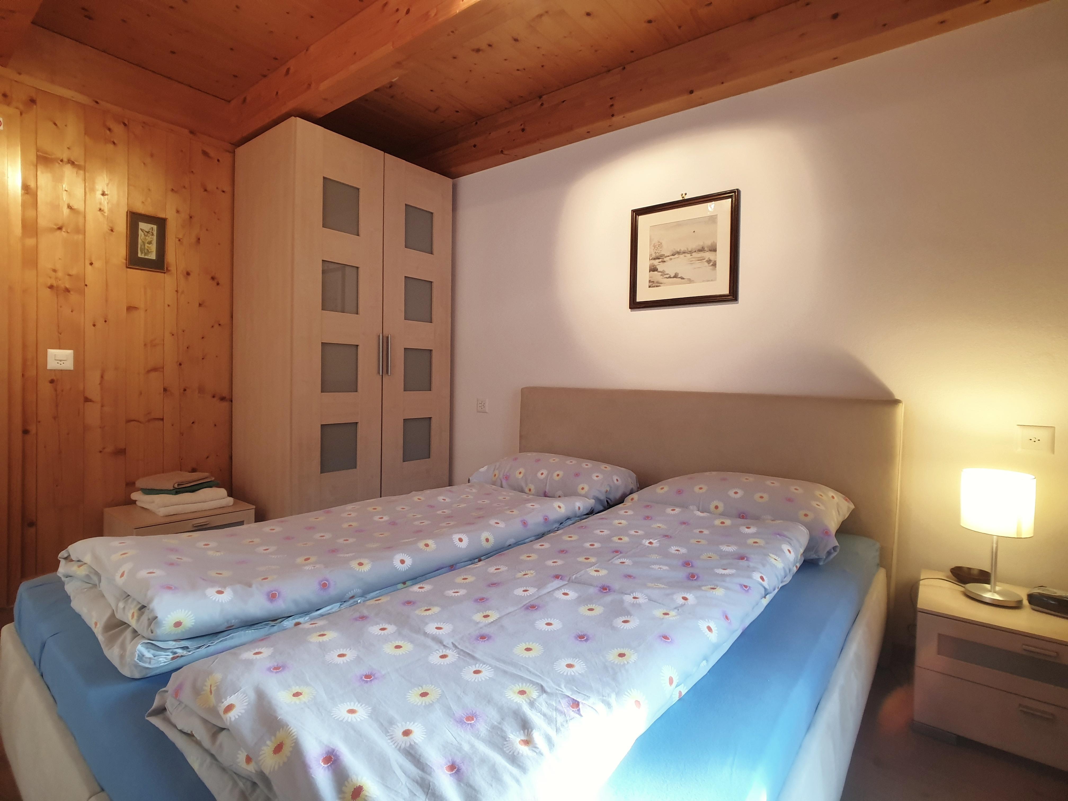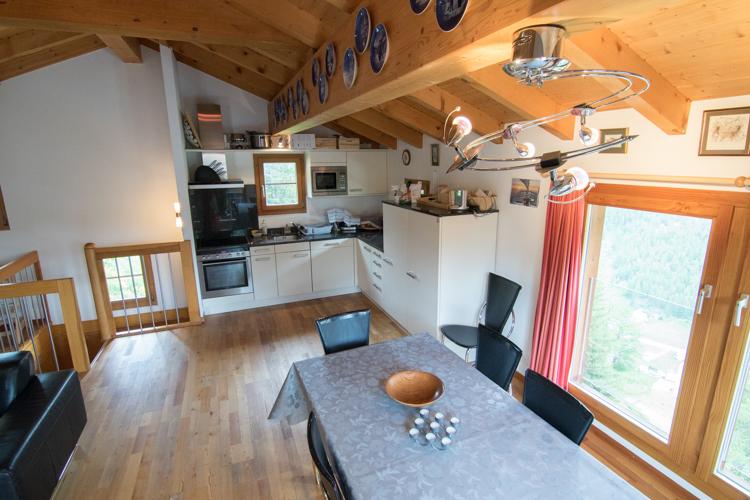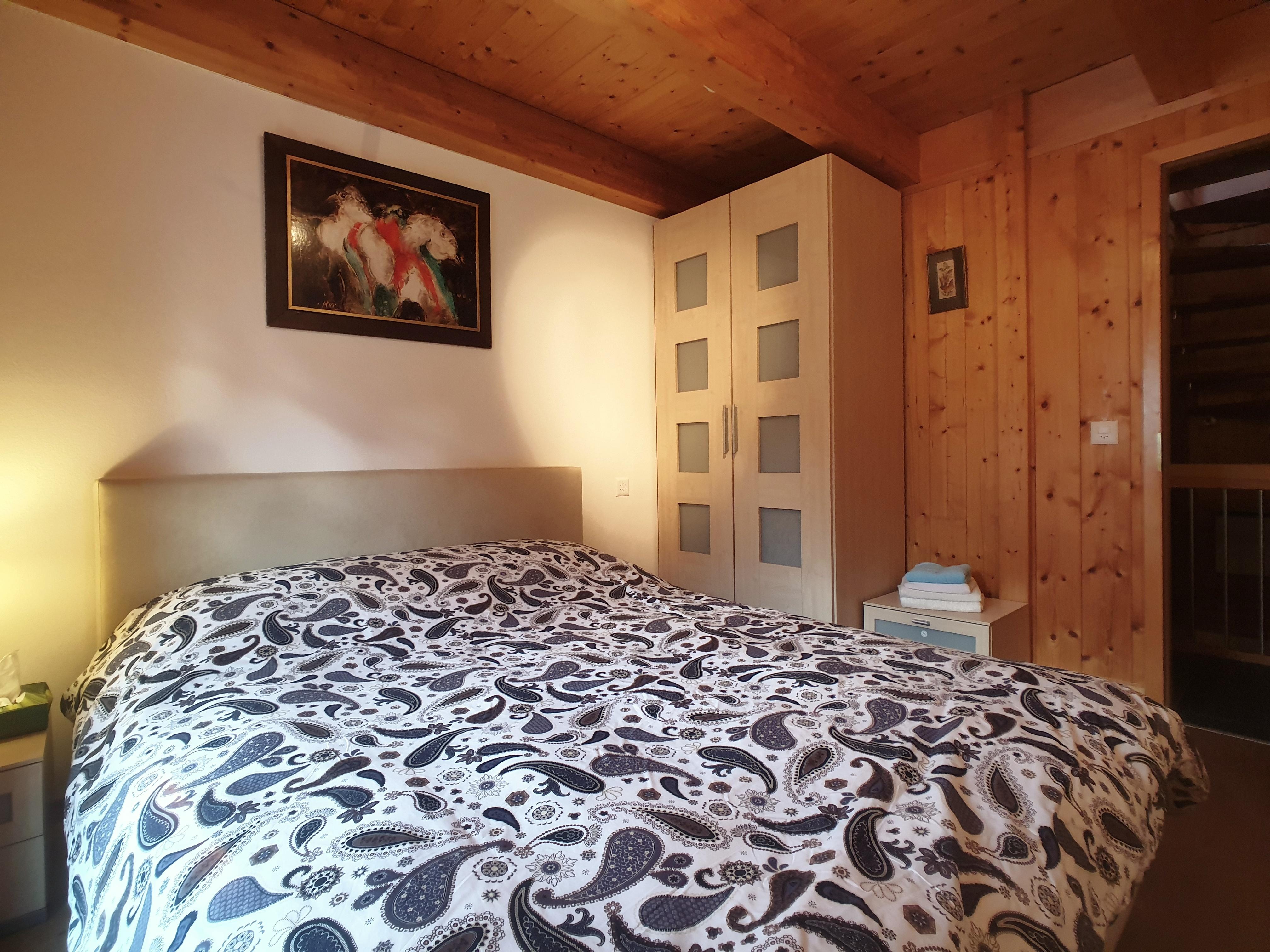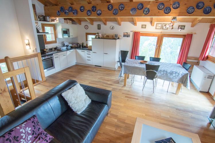 Gemütlich und authentisch eingerichtetes Chalet mit 3 Schlafzimmern. Im mittleren Stock befinden sich 2 Schlafzimmer (2x Doppelbett) und ein Badezimmer mit einer Dusche und einer Toilette. Im unteren Stock befinden sich das Master-Schlafzimmer mit einem grossen Doppelbett und einem en-suite Badezimmer mit Jacuzzi-Badewanne. Im obersten Stock befindet sich das Wohnzimmer mit offener Küche und einem gemütlichen Kamin. Auch hat es einen Büroplatz mit Internetanschluss & Drucker. Auf allen Stockwerken befindet sich zudem einen Balkon mit wunderschönem blick bis nach Saas-Almagell.
