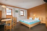 Gemütliche 1-Zimmer-Wohnung, in der 1. Etage, mit ca. 21 m². Wohn und Schlafraum, 1 Doppelbett, Essplatz mit Eckbank, Kleine Kochecke mit 2 Platten, Kühlschrank, Kaffeemaschine, Toaster und Wasserkocher. Dusche/WC.