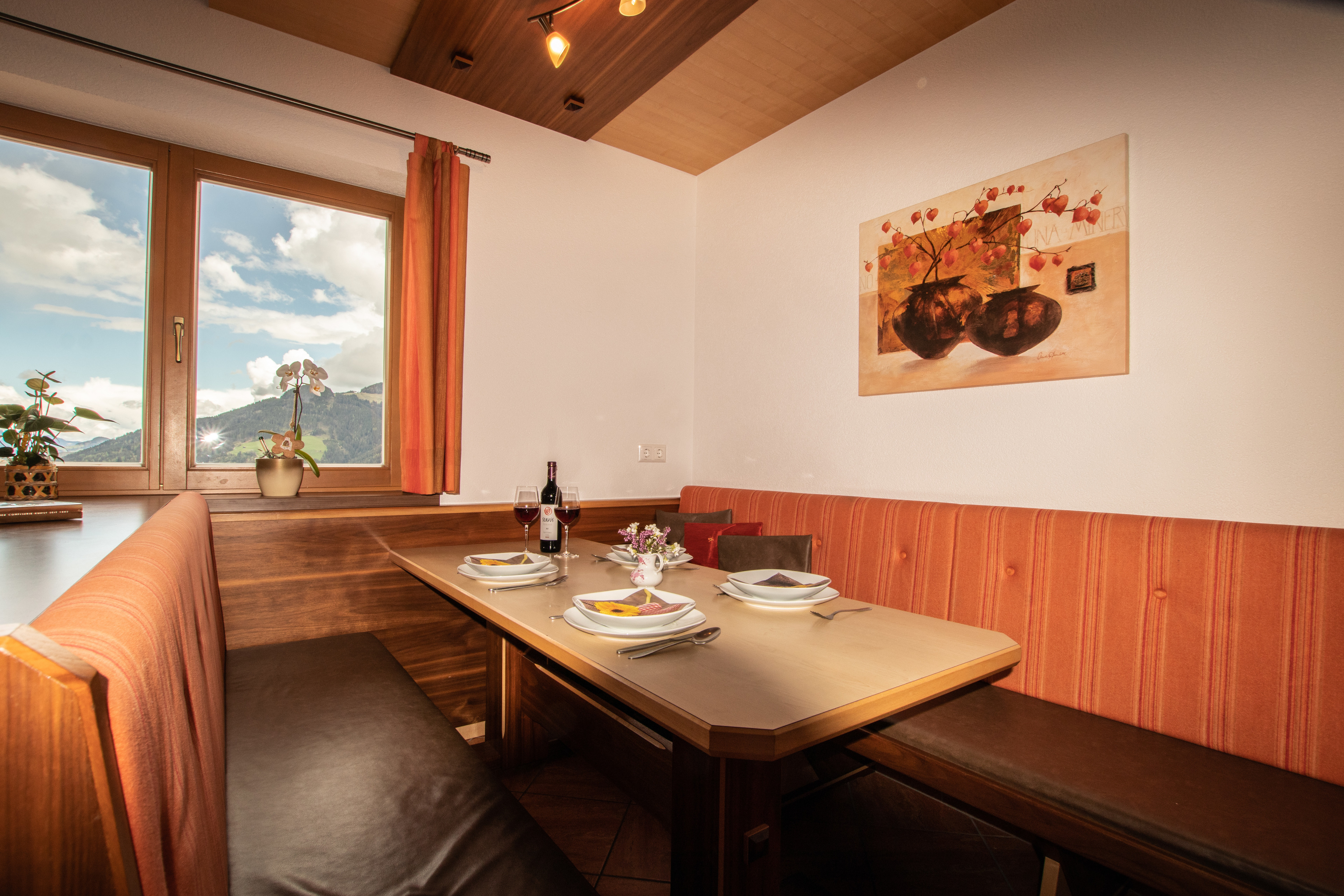Ferienwohnung mit Bergpanorama Blick 3-Zimmer-Wohnung im Erdgeschoss, ca. 60 m². Wohnküche mit Essplatz (Eckbank), Küchenzeile (4 Ceranfelder, Backofen, Kühlschrank mit Gefrierfach, Kaffeemaschine, Wasserkocher, Toaster). Zwei hochwertige Zirben-Doppelzimmer. Dusche/WC. Traumhafter Panoramablick. Eine weitere Wohnung bis 4 Personen im DG kann zusätzlich gebucht werden. Wanderungen direkt ab dem Haus möglich, Mittelstation Schatzbergbahn mit dem PKW in 10min erreichbar. Im Sommer sind die Bergbahnen Wildschönau und Alpbachtal, Freibad, Tennis, geführte Wanderungen, Kinderprogramm, Bergbauermuseum, Schaubergwerk und mehr inkludiert. Ski und Wanderbus ca. 250m zu Fuß, 3min)