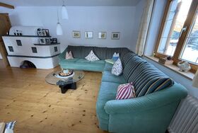 Für gemütliche Abende ist das Ferienhaus mit einem Kachelofen und einem Fernseher ausgestattet.
