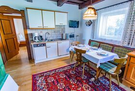 Welcome to apartment 2 of the Pension Soldanella in a central location in Ramsau am Dachstein. The apartment is located on the first floor with a large living area with sofa bed and tiled stove, a kitchenette which is fully equipped, a bedroom and a beautiful south-west facing balcony. Free WiFi and cable TV are of course included.