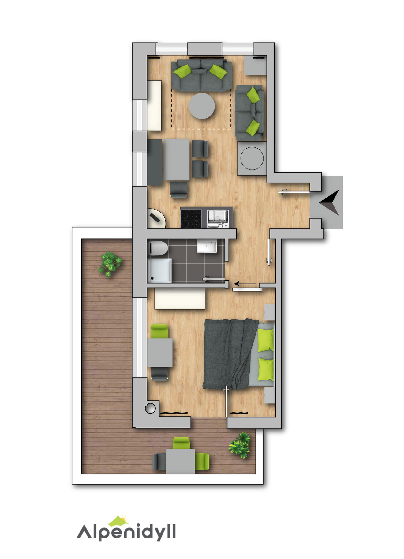 Willkommen in der Wohnung 2 der Pension Soldanella in zentraler Lage in Ramsau am Dachstein. Die Wohnung befindet sich im Erdgeschoss mit einem großen Wohnbereich mit Schlafcouch und Kachelofen, einer Küchenzeile die voll ausgestattet ist, einem Schlafzimmer und einem einem schönen süd- westseitigen Balkon. Kostenloses WLAN und Kabel-TV sind natürlich inklusive.
