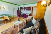Das Apartment Top 8 im Haus Soldanella lädt mit seinem riesigen Koch-Ess-Wohnbereich und der schönen Terrasse zum gemütlichen Verweilen ein. Es verfügt über ein Doppelzimmer und ein kleineres Zimmer mit einem Etagenbett und ein sehr großes Bad.