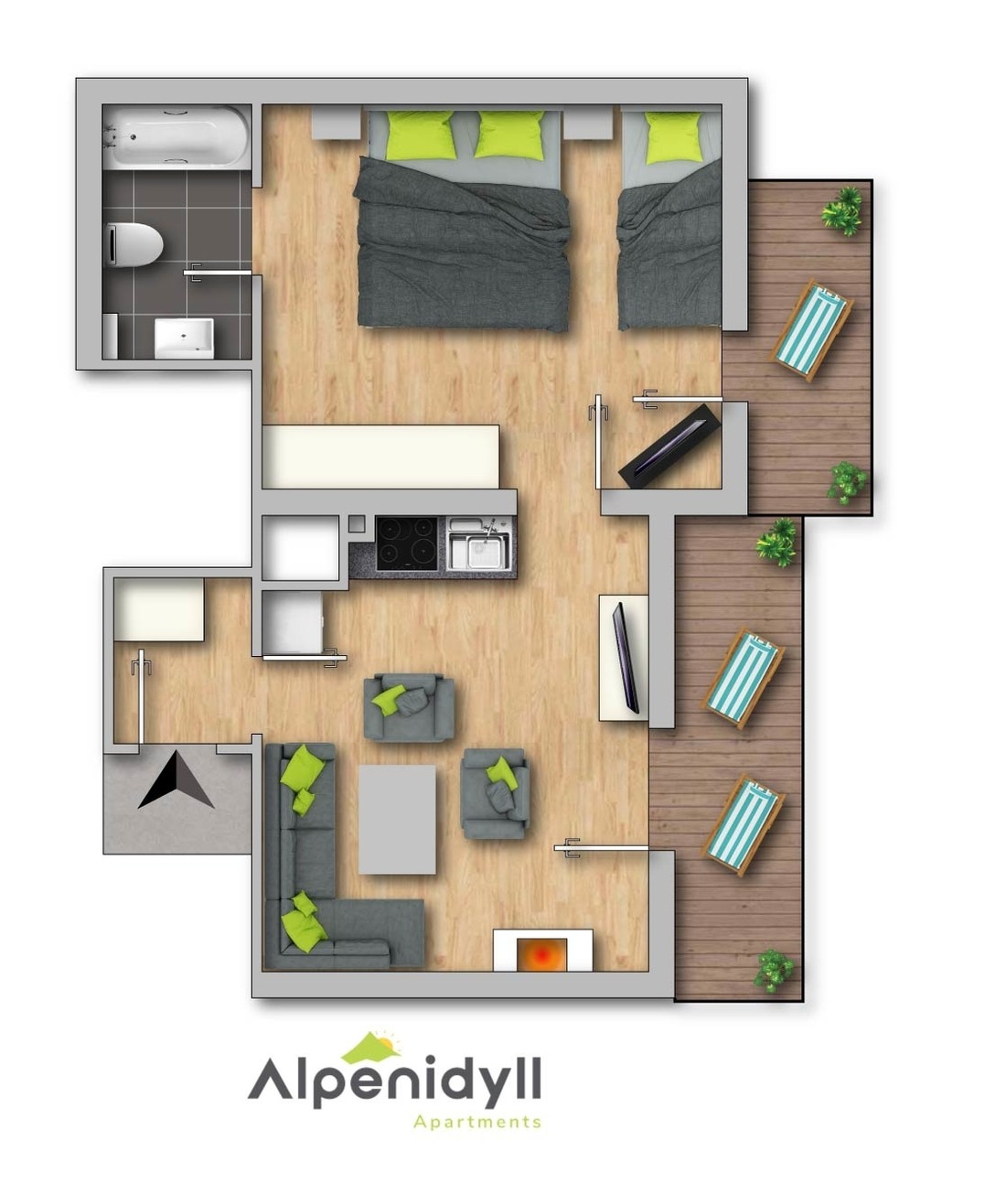 Mit einer Größe von rund 37 m², 1 Schlafzimmer, 1 Bad und einer gemütlichen Wohnküche bietet sie Platz für insgesamt 3 Personen.