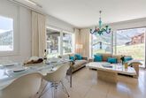 Das Appartement mit Panoramablick und einer Gartenterrasse bietet 1 Bad/WC und 1 Dusche/WC. Nichtraucher Wohnung. Haustiere sind nicht gestattet.