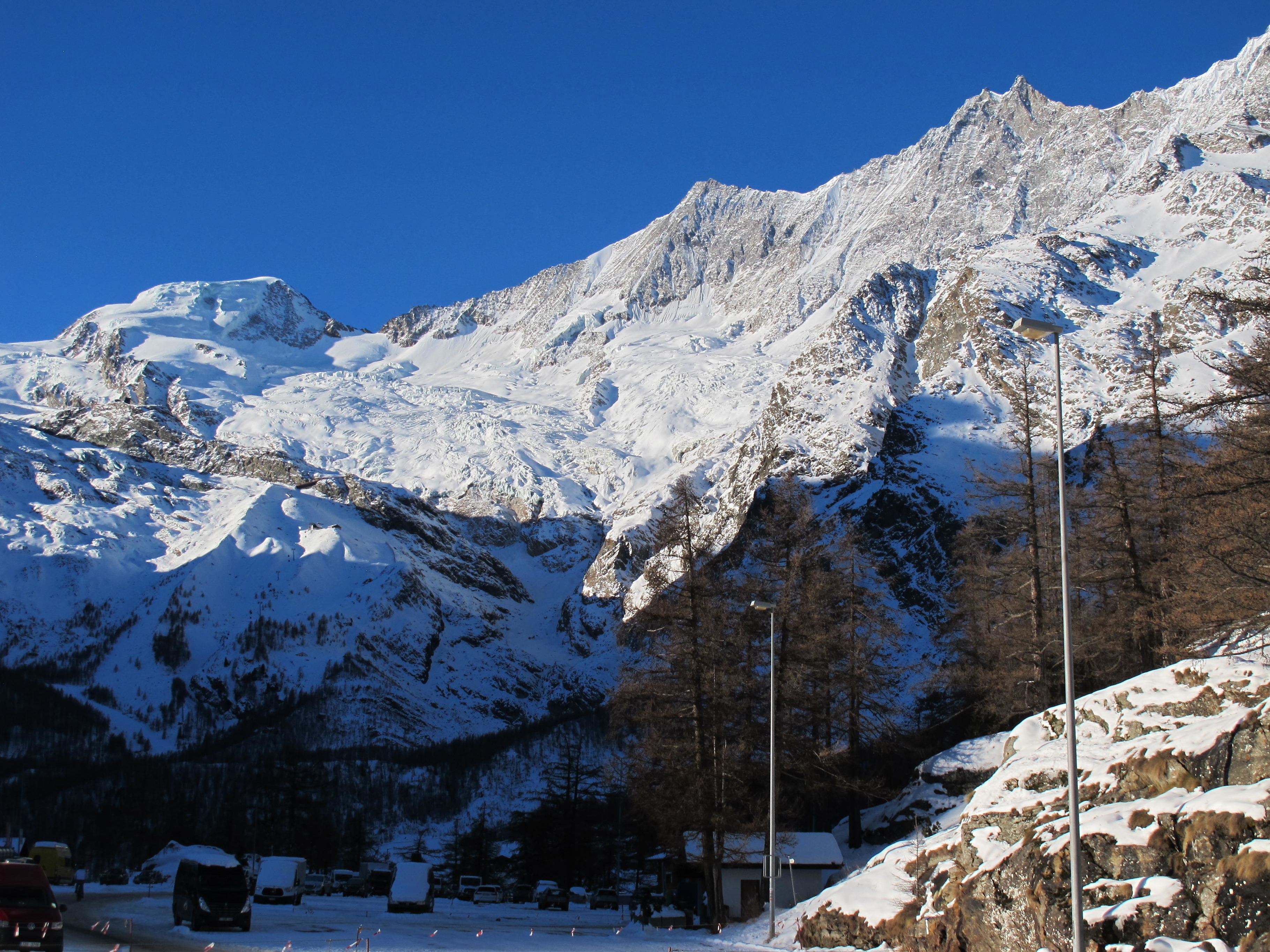SAAS-FEE: der weltbekannte Ferienort mit seinen imposanten Gletschern liegt in einer kleinen Mulde, auf 1.800 m Höhe, und ist umgeben von 13 Viertausendern, darunter so bekannte Berge wie der Dom, Alphubel, Nadelhorn, Täschorn und Allalin. Ganz Saas-Fee ist autofrei und kann nur zu Fuß oder mit einem Elektrotaxi besucht werden. Am Ortseingang bietet ein riesiges, mehrstöckiges Parkterminal (kostenpflichtig) ausreichend Parkmöglichkeiten.