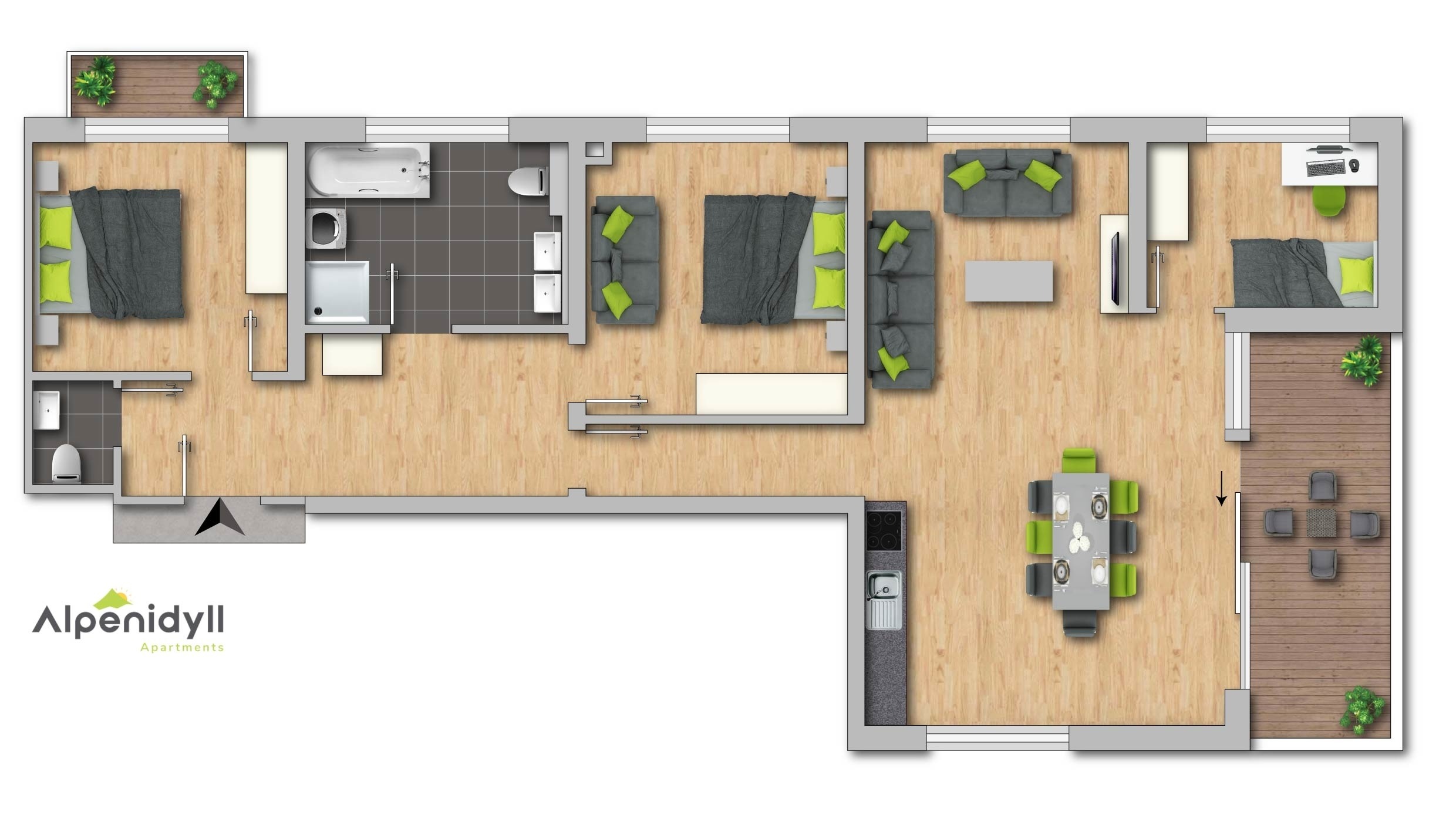Das modern ausgestattete Apartment City Dream 1 by Alpenidyll Apartments befindet sich im zweiten Stock eines Wohngebäudes im Herzen von Schladming. Auf einer Wohnfläche von 101 m² bietet es komfortabel Platz für bis zu acht Personen und eignet sich ideal für Familien, kleine Gruppen oder Reisende, die eine zentrale Lage suchen. Die Sommercard ist inklusive!