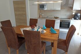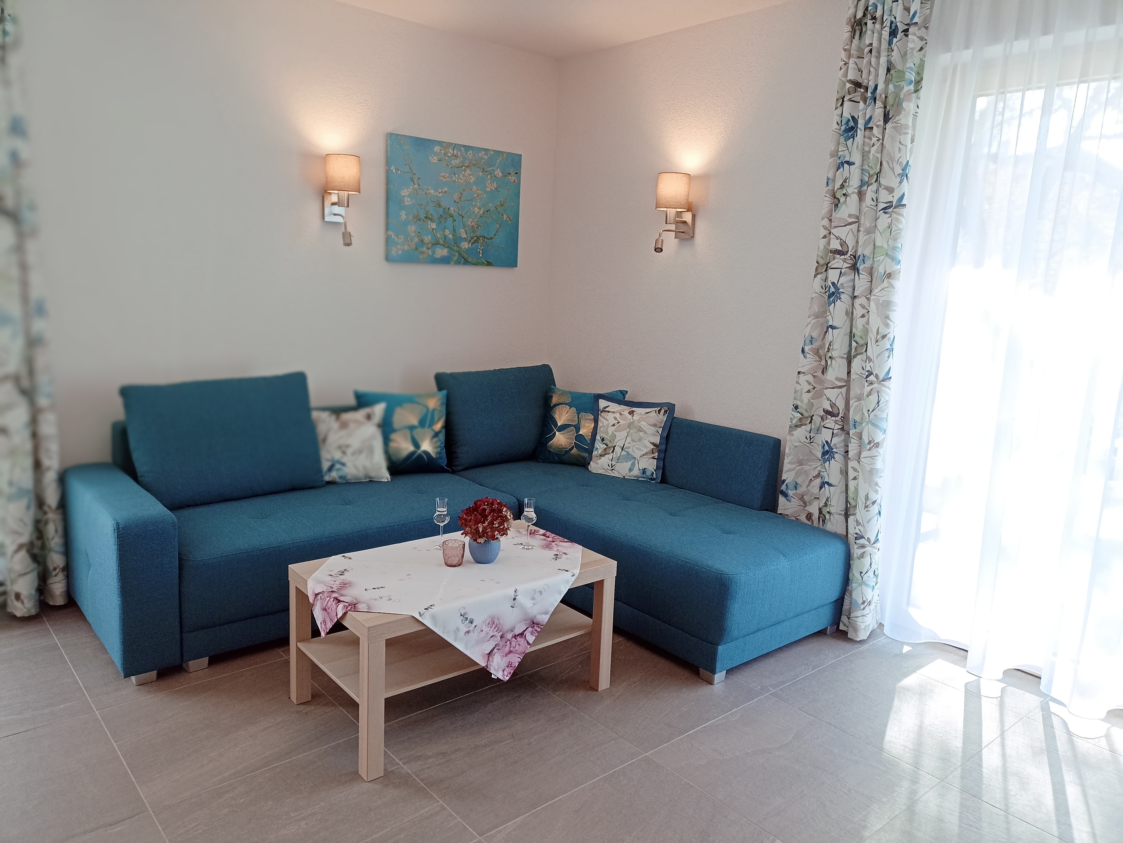 Die Wohnung verfügt über eine geräumige, helle Wohnküche - komfortabel ausgestattet mit einem großen Esstisch, Wohnlandschaft mit SAT-TV und Zugang zur möblierten Terrasse und zum Garten. 2 Schlafzimmer, beide mit SAT-TV ausgestattet mit Doppelbetten und Schlafsofa , Schrank und genügend Platz für ein Kinderbett. Die Räume sind durch Fensterrollos absolut verdunkelbar. Ein Badezimmern mit Dusche, Waschtisch und WC verfügt über ein Fenster und somit haben Sie Tageslicht. Weiters gibt es ein Extra-WC und einen Vorraum mit Garderobe. Im Winter Skischuhtrockner.