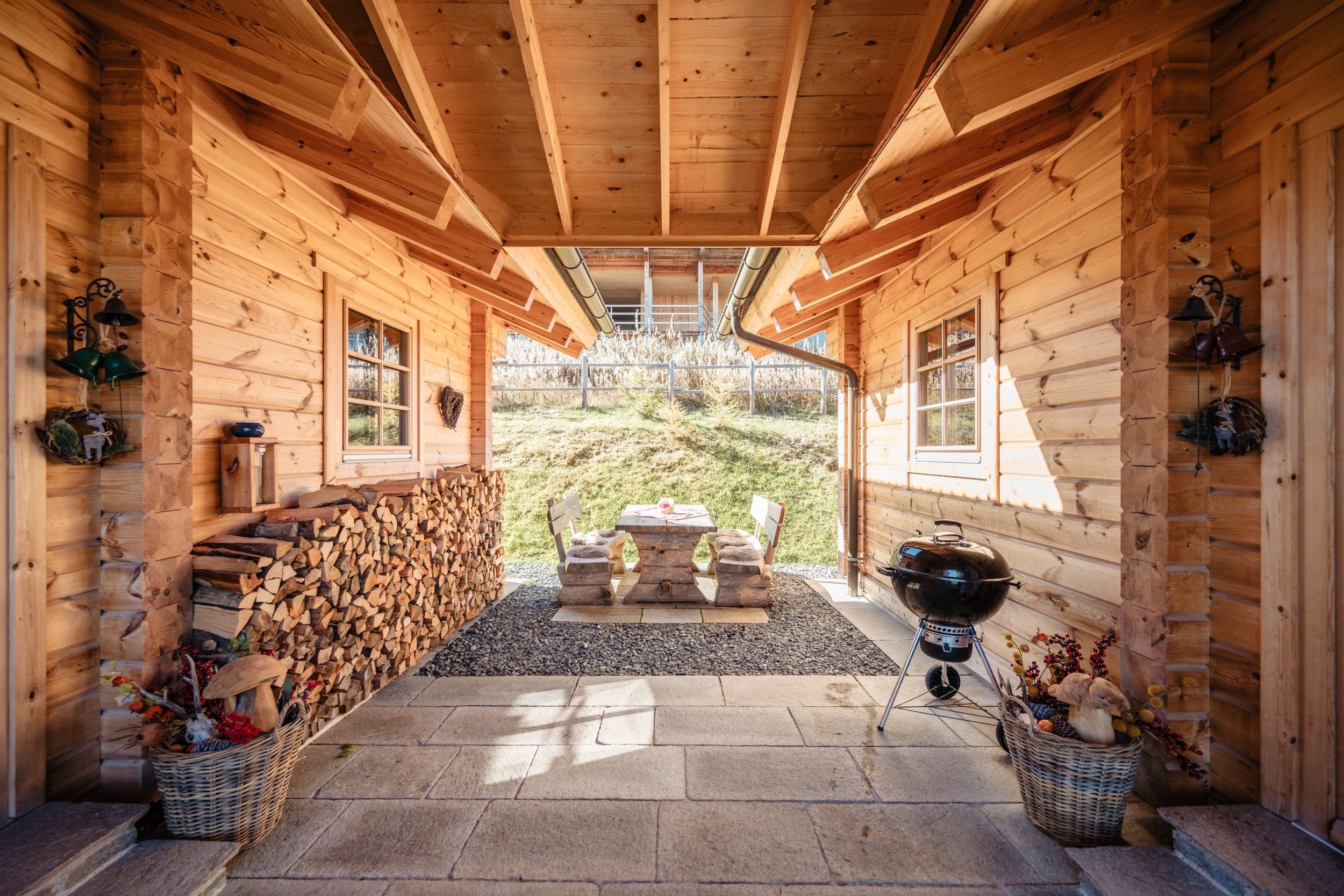 Die Wohnküche ist gemütlich und sehr komfortabel eingerichtet. Nach einem tollen Tag die eigene Panorama-Sauna genießen und zum Abschalten noch ein Glas Wein im Whirlpool! Weiters bietet die Feuerstelle eine Möglichkeit zum Gemeinsamen Zusammensitzen. Bei uns steht dem perfekten und erholsamen Urlaub auf der Alm Nichts im Weg. Tiere sind leider nicht erlaubt!