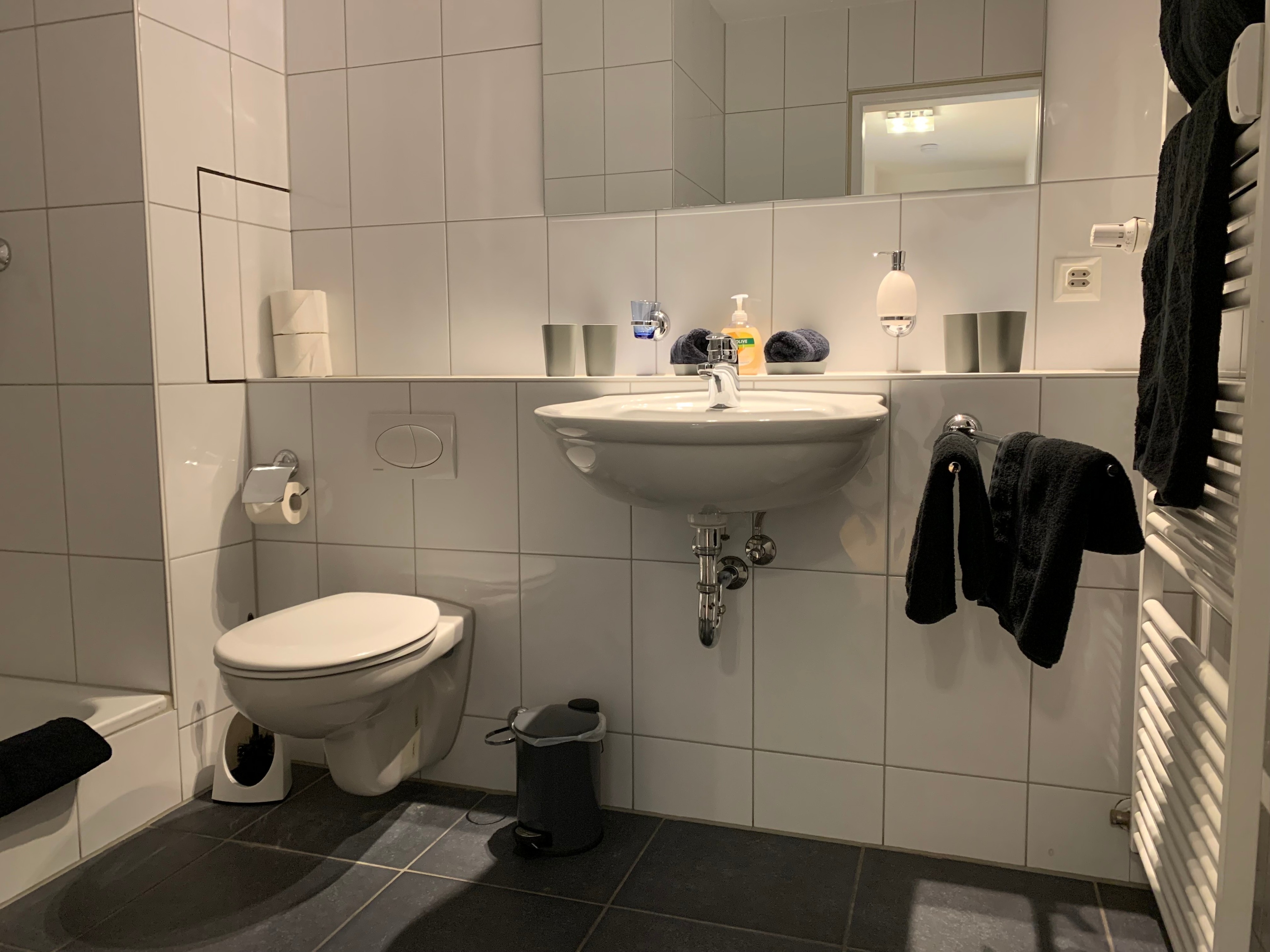 Die Wohnung verfügt über ein Badezimmer mit Dusche und WC.
