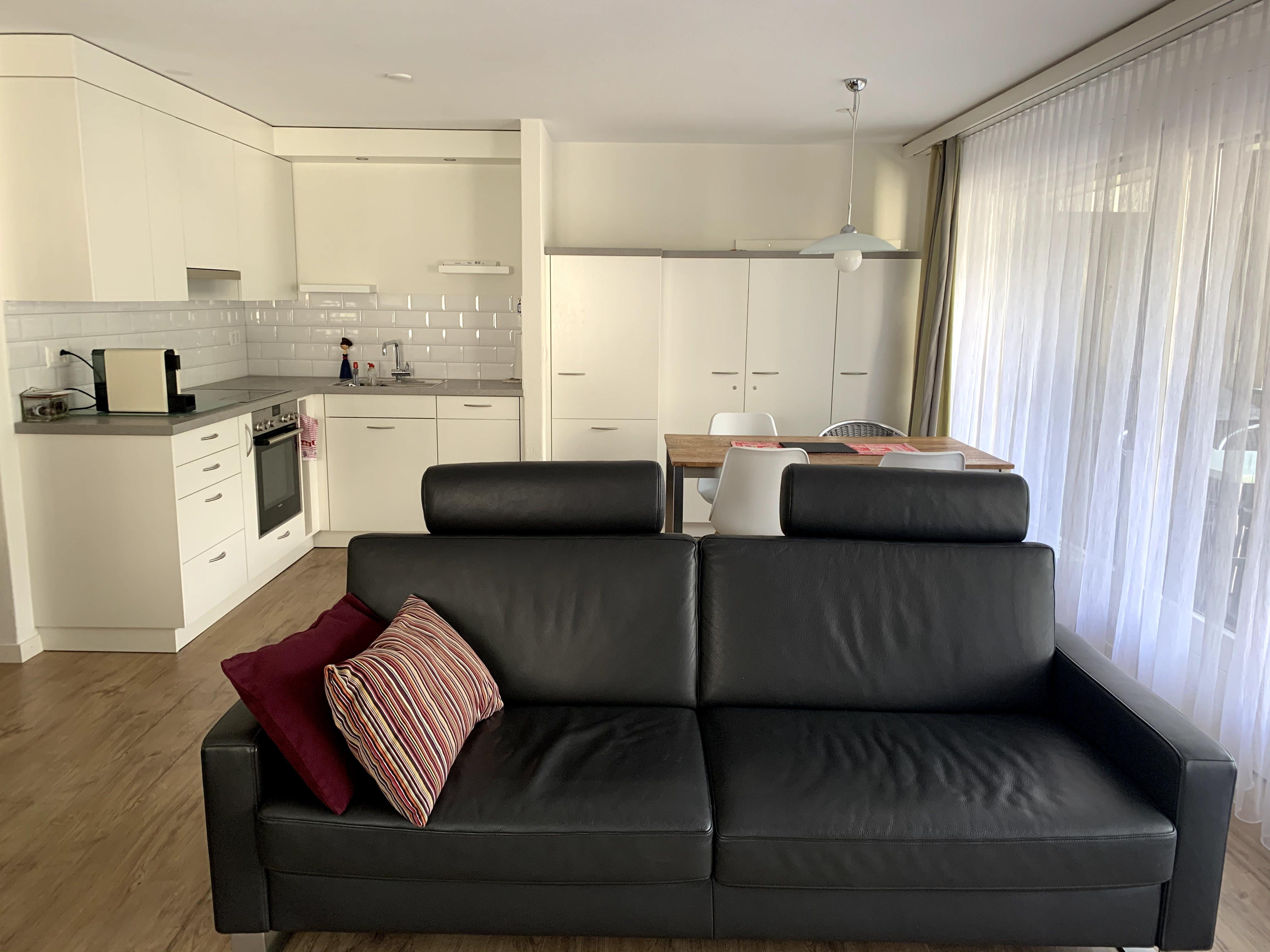 Gemütlich eingerichtetes Apartment mit 1 Schlafzimmer (mit Doppelbett). Das Apartment verfügt über eine offene, neu renovierte Küche und einen grossen Wohn/Essbereich. Im Wohnbereich befindet sich eine Schlafcouch auf welcher 2 weitere Personen übernachten können. Das Badezimmer wurde ebenfalls neu renoviert und verfügt über Dusche/Toilette/Waschbecken.