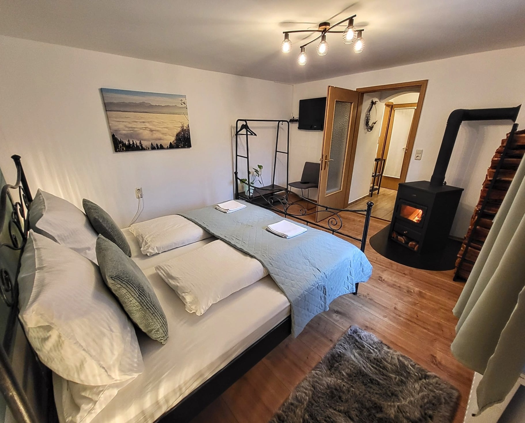 Hier genießen Sie erholsame Ruhe, eine herrliche Aussicht auf den Hohen Peißenberg sowie die umliegenden Felder. Auch ohne Auto sind alle Geschäfte des täglichen Bedarfs mit dem Rad oder zu Fuß erreichbar. Bäcker, Supermarkt, Metzger, Café, Restaurants. Der Badesee liegt nur wenige Minuten entfernt. Direkt gegenüber starten die schönsten Spazier- und Farradwege ins Umland. Freunde des Langlaufsports sind bei uns ebenfalls bestens aufgehoben. Der Einstieg in die Loipe befindet sich ebenfalls im Feld gegenüber. Die komplett neu renovierte Wohnung bietet mit Ihrer Größe von ca. 50m² genug Platz für bis zu 4 Erwachsene und 1 Kind. 1 Doppelbett, 1 Einzelbett, 1 Etagenbett. Sie ist ausgestattet mit Kabel-TV, Spülmaschine, Mikrowelle, Waschmaschine, Trockner, Holzofen für gemütliche Abende. Für die ganz Kleinen können ein Hochstuhl, ein Kinderreisebett inkl. Bettwäsche, Babyphone und Rausfallschutz gestellt werden. In unserem großen Garten lassen sich viele herrliche Sonnenstunden genießen, währenddessen die Kinder, mit dem Streichelzoo beschäftigt sind oder ausgiebig mit diversen Spielmöglichkeiten auf dem eingezäunten Grundstück spielen können. Bettwäsche und Handtücher sind selbstverständlich inklusive. Hunde gerne nach Absprache für 5€ pro Tag zzgl. 25 € Endreinigung am Ende des Aufenthaltes.
