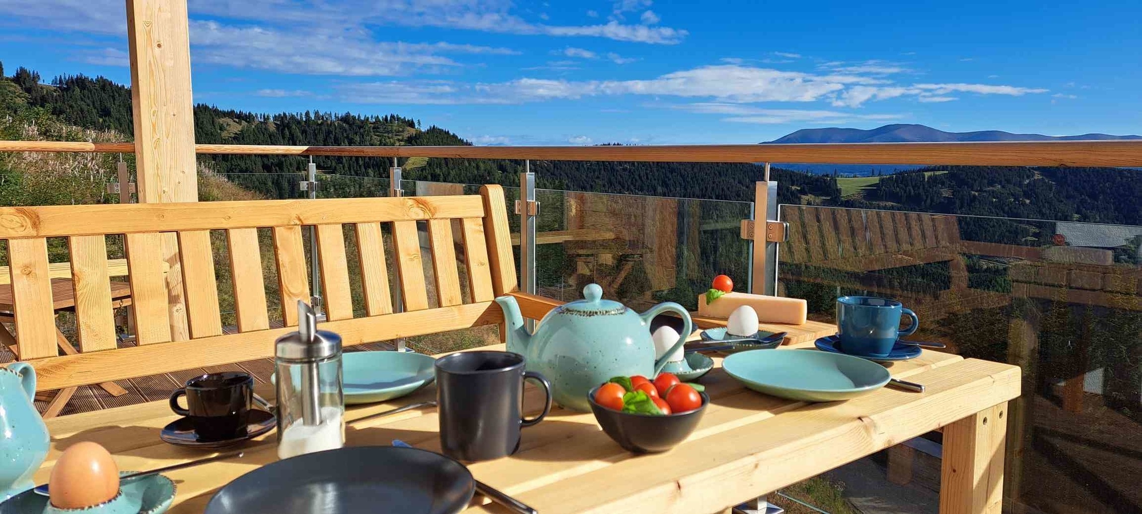 KLIPPITZ HEIGHTS, eine moderne, 2022 erbaute Vollholzlodge liegt auf 1545 m.ü.M am Rande des Almhüttendorfs Klippitztörl hoch über dem Lavanttal in Kärnten und bietet mit ihrer unverbaubaren, fantastischden Panoramasicht Sommer wie Winter Urlaubsvergnügen für Jung und Alt.