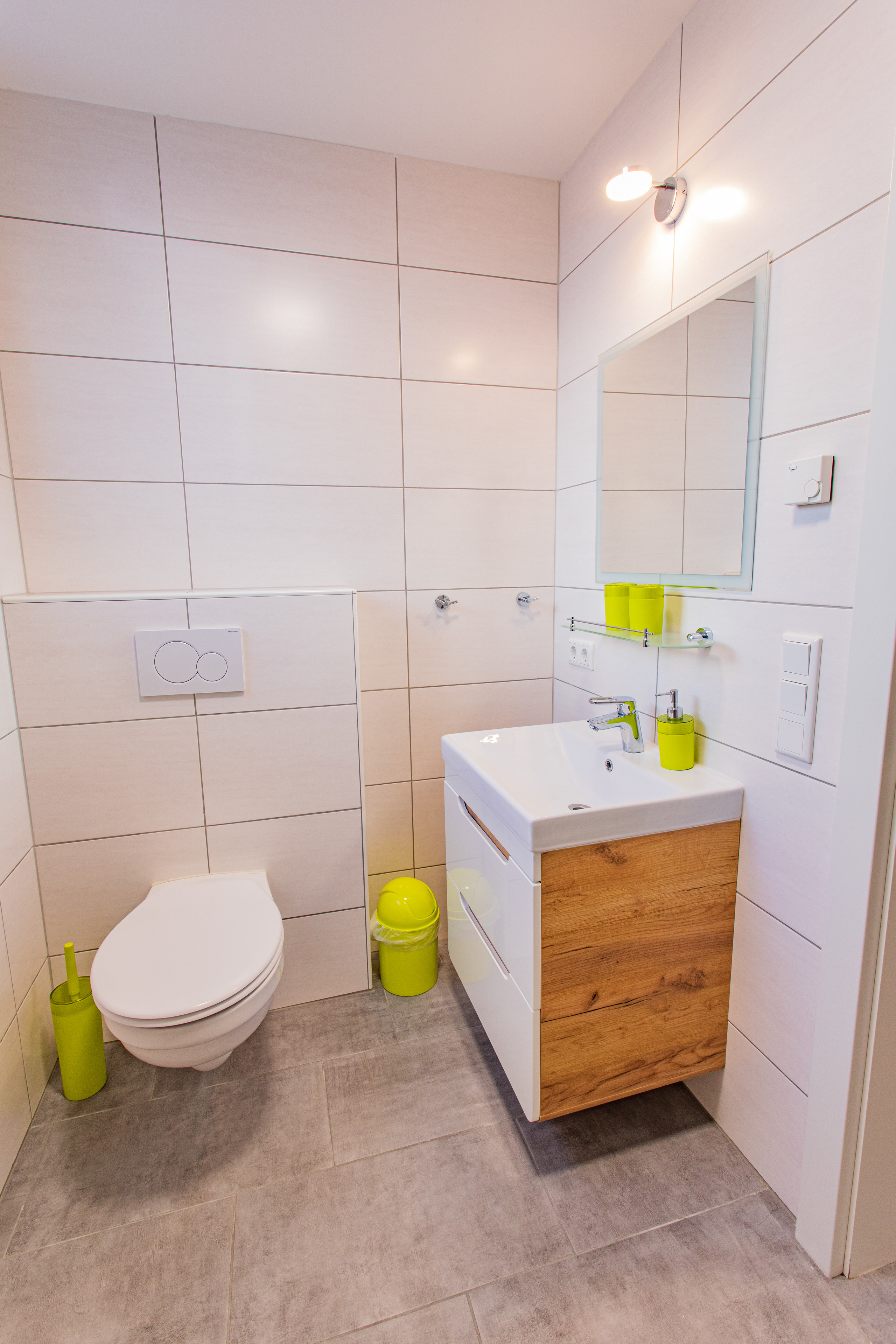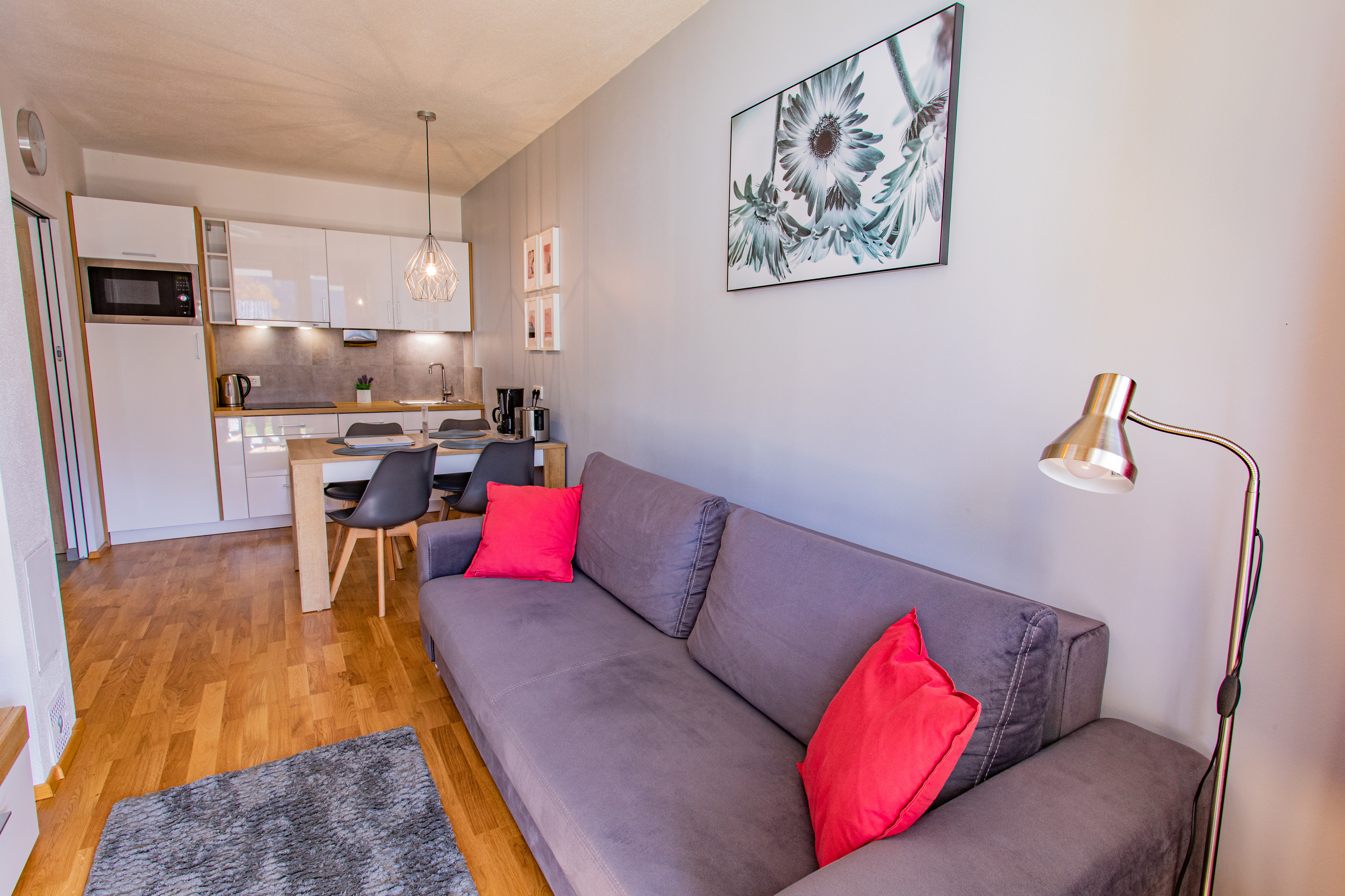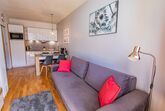 The cozy, modern furnished apartment is located on the first floor of a newly constructed building and consists of: