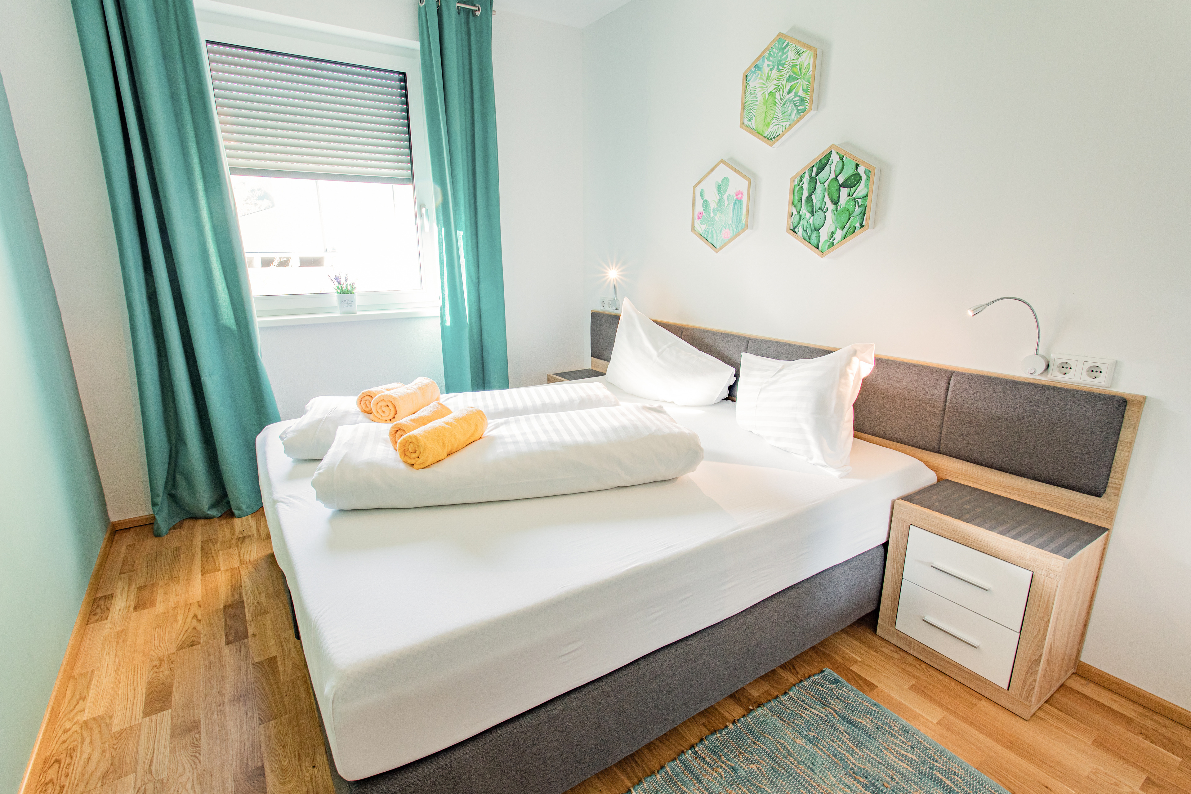 - a bedroom with a double bed, which can be pulled apart