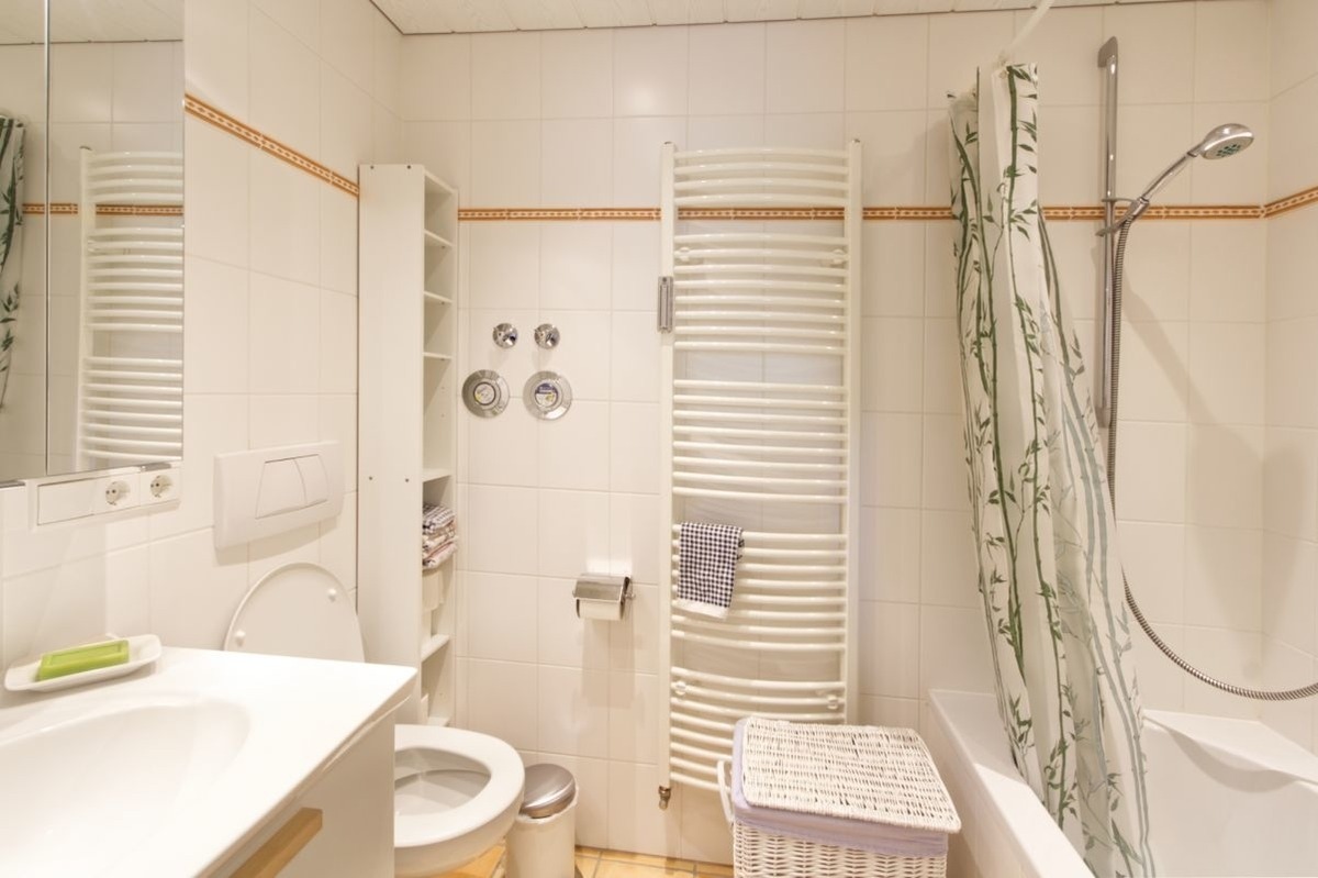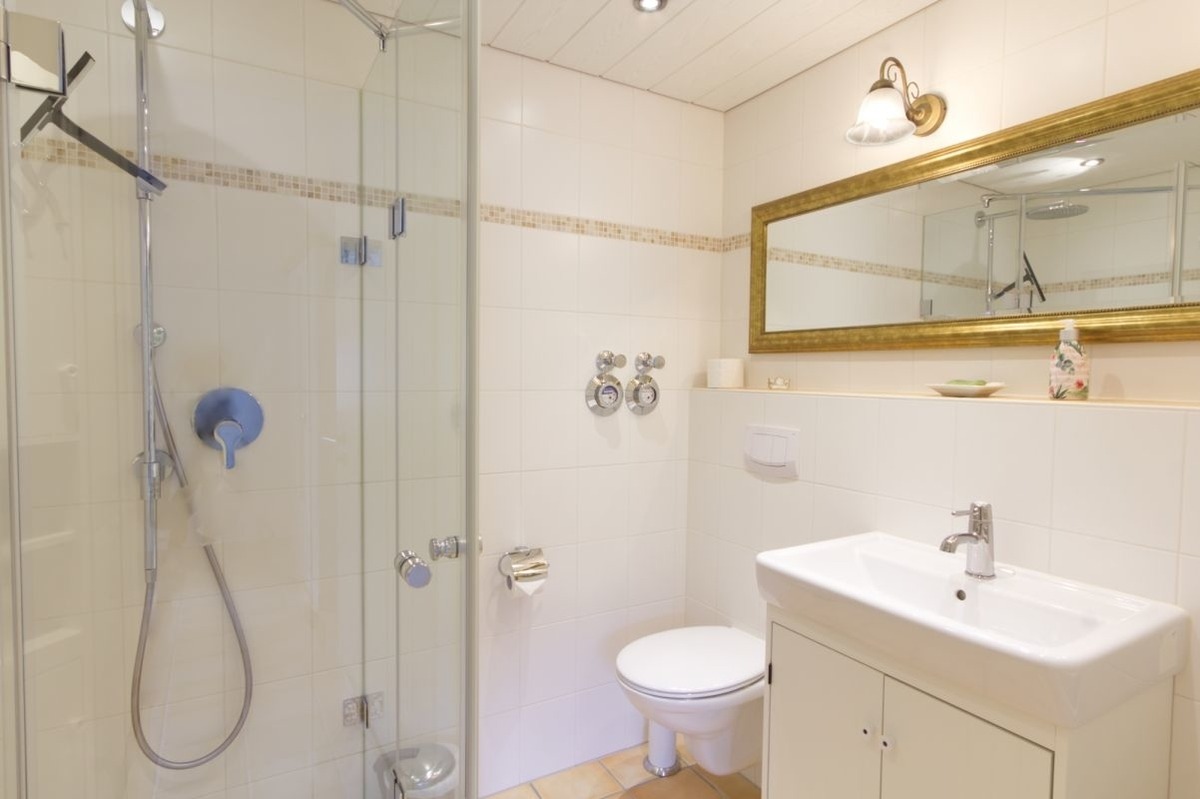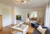 Sie hat vom Flur aus zwei separate Wohnungseingänge, 2 Bade- und Schlafzimmer mit je einem Doppelbett 180x200cm. Dadurch eignet sich die Wohnung auch perfekt für größere Familien befreundete Paare, da sie genügend Privatsphäre bietet. Die geräumige Küche und das sehr große Wohnzimmer werden dann gemeinschaftlich genutzt. Im Haus werden von uns noch eine Wohnung im Obergeschoss und ein Appartement im Dachgeschoss angeboten.