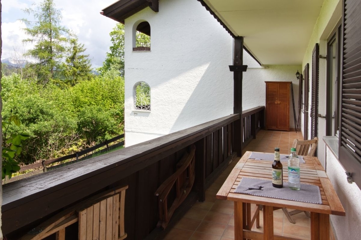 WLAN-Anschluss ist inklusive. Ein Highlight ist der auf der Süd- und Westseite umlaufende Balkon mit herrlichem Blick über Mittenwald, nach Tirol, sowie zum Kranzberg und Wettersteingebirge.