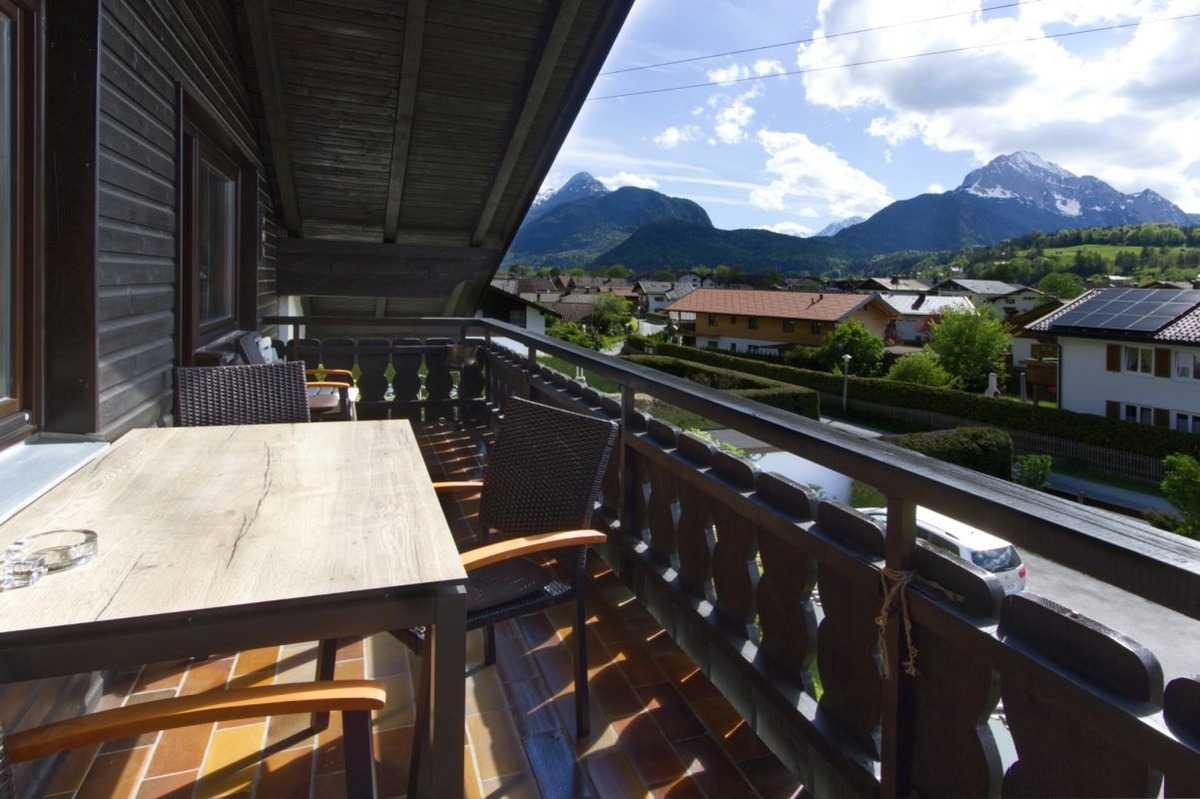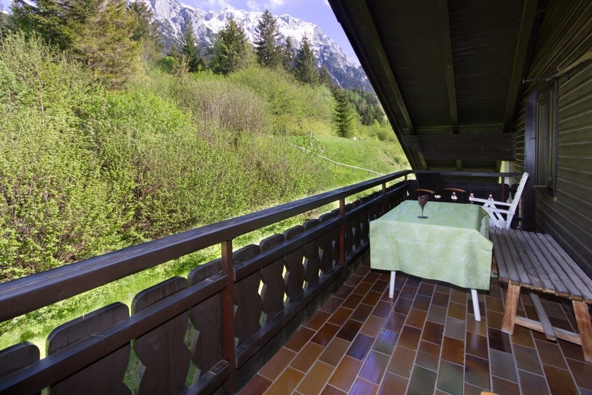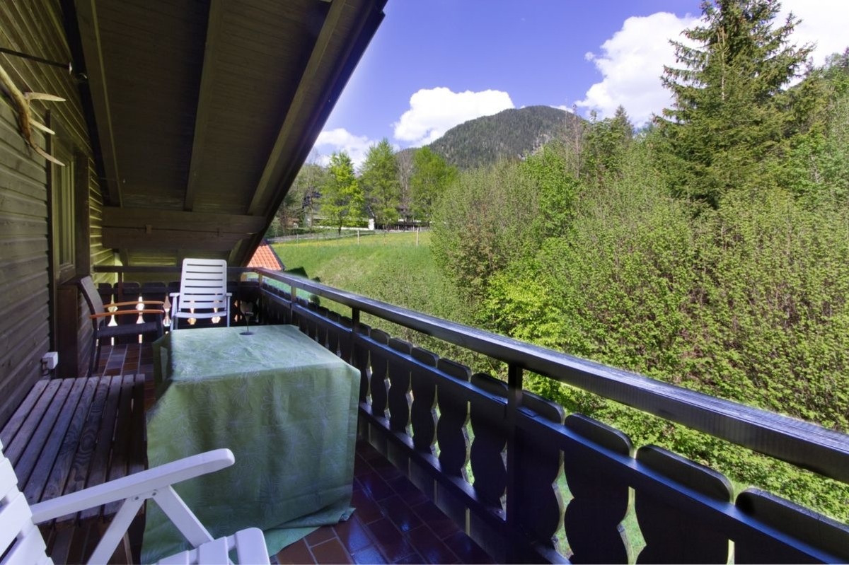 Von den Balkonen hat man jeweils einen tollen Blick entweder zum steil aufragenden Karwendelgebirge oder dem mächtigen Wettersteingebirge.