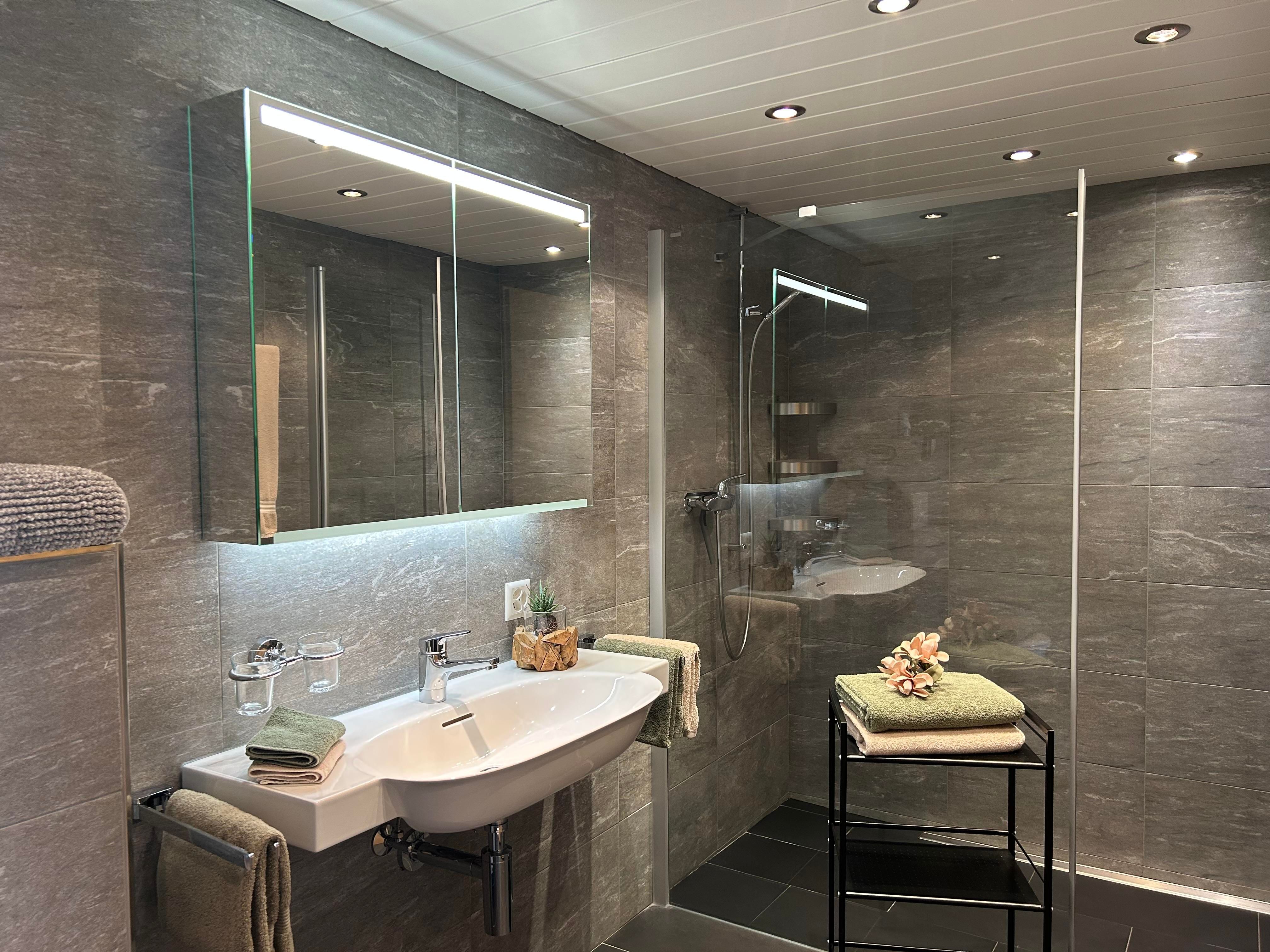 3-Zimmerwohnung mit grosser Südterrasse und Liegewiese. Stilvoll eingerichtet, Wohn-/Esszimmer mit 2 Schlafgelegenheiten, 2 Doppelschlafzimmer, Küche mit Geschirrspüler,Glaskeramikherd, Kaffee-Filtermaschine oder Kaffeemaschine DELIZIO Kapselsystem,Wasserkocher, Kühlschrank mit Gefrierfach, Nasszelle, Föhn, Gratis Internetzugang, Flachbildfernseher, Radio,CD-Player