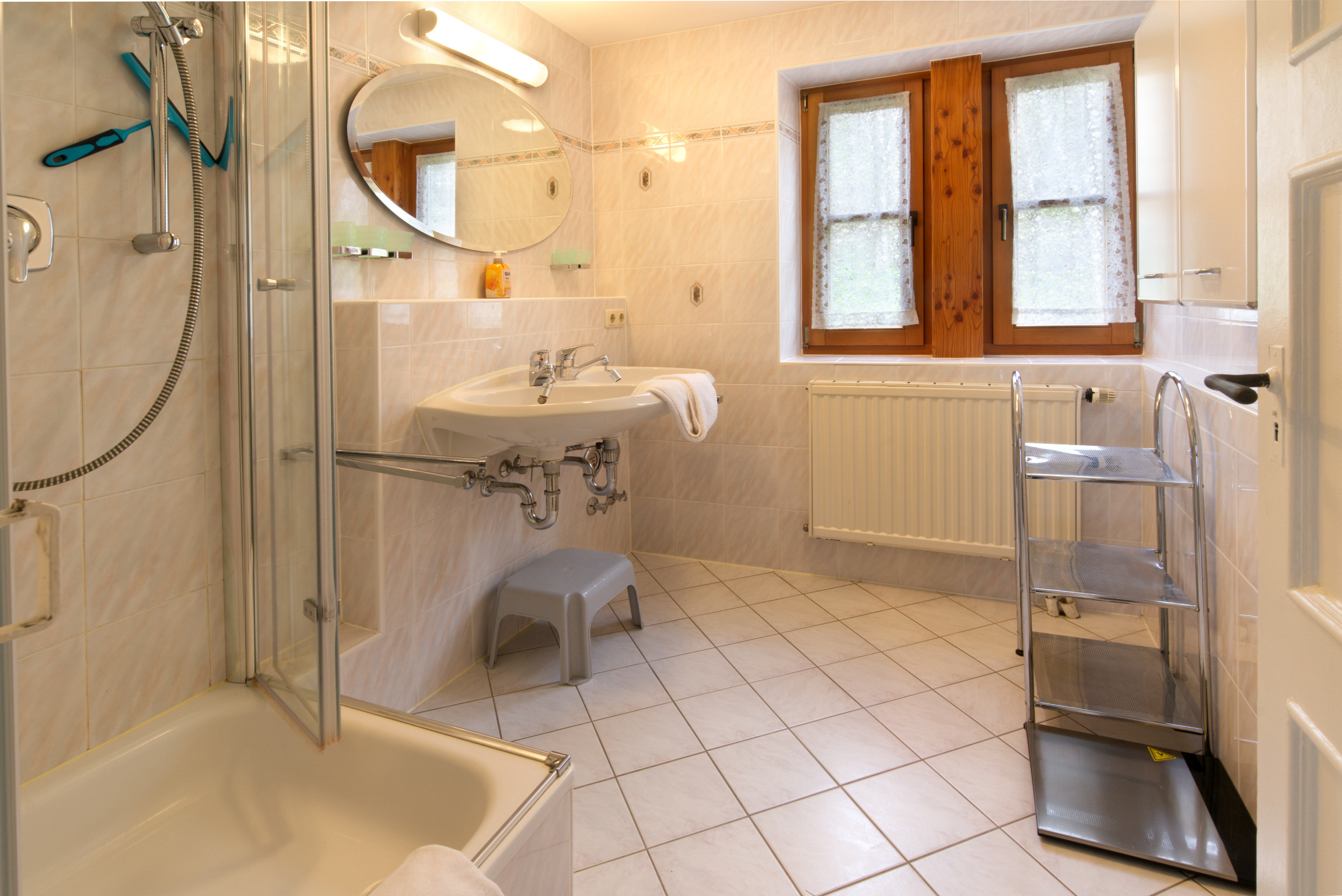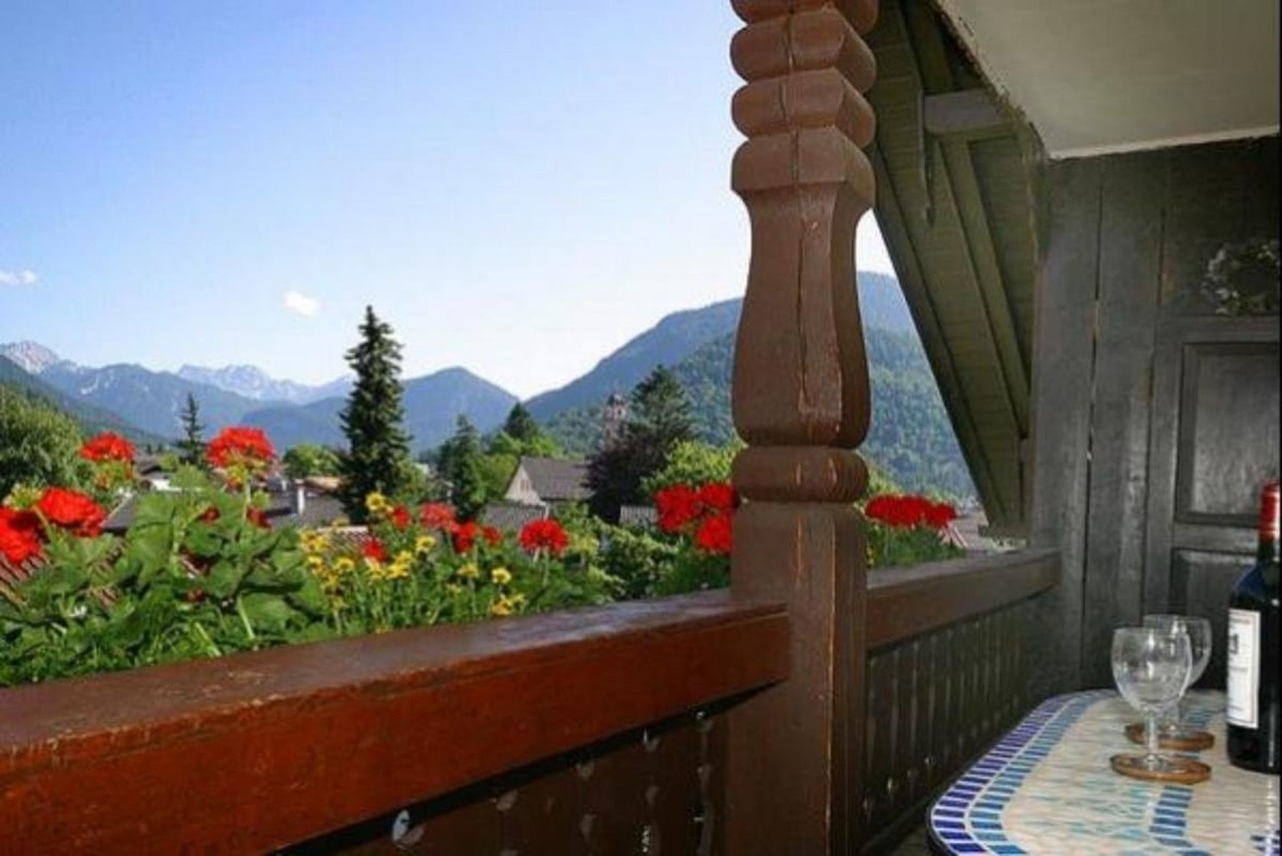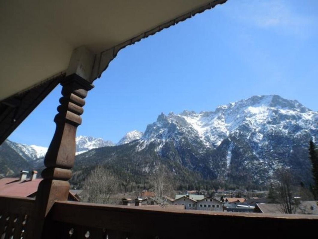 Zauberhaft ist auch der Ausblick vom nicht einsehbaren Balkon auf die majestätische Westflanke des Karwendelgebirges. Die Lage ist ideal: Vieles kann zu Fuss erledigt werde, vom Bummel durch den romantischen Ortskern bis zum täglichen Einkauf.