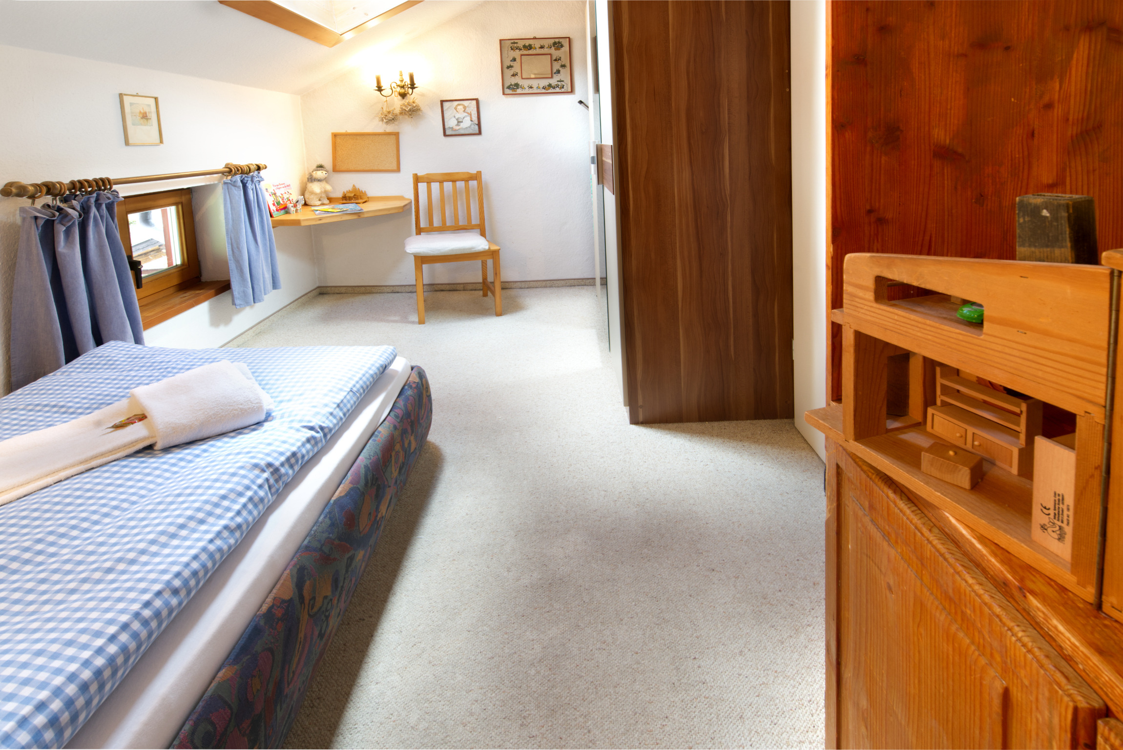 Die Wohnung besteht aus drei Zimmern, die bis zu fünf Personen Platz bietet. Zwei Schlafzimmer mit einem Einzel- und einem Doppelbett können durch ein Schrankbett im Wohnzimmer erweitert werden. Hier werden Wanderer,