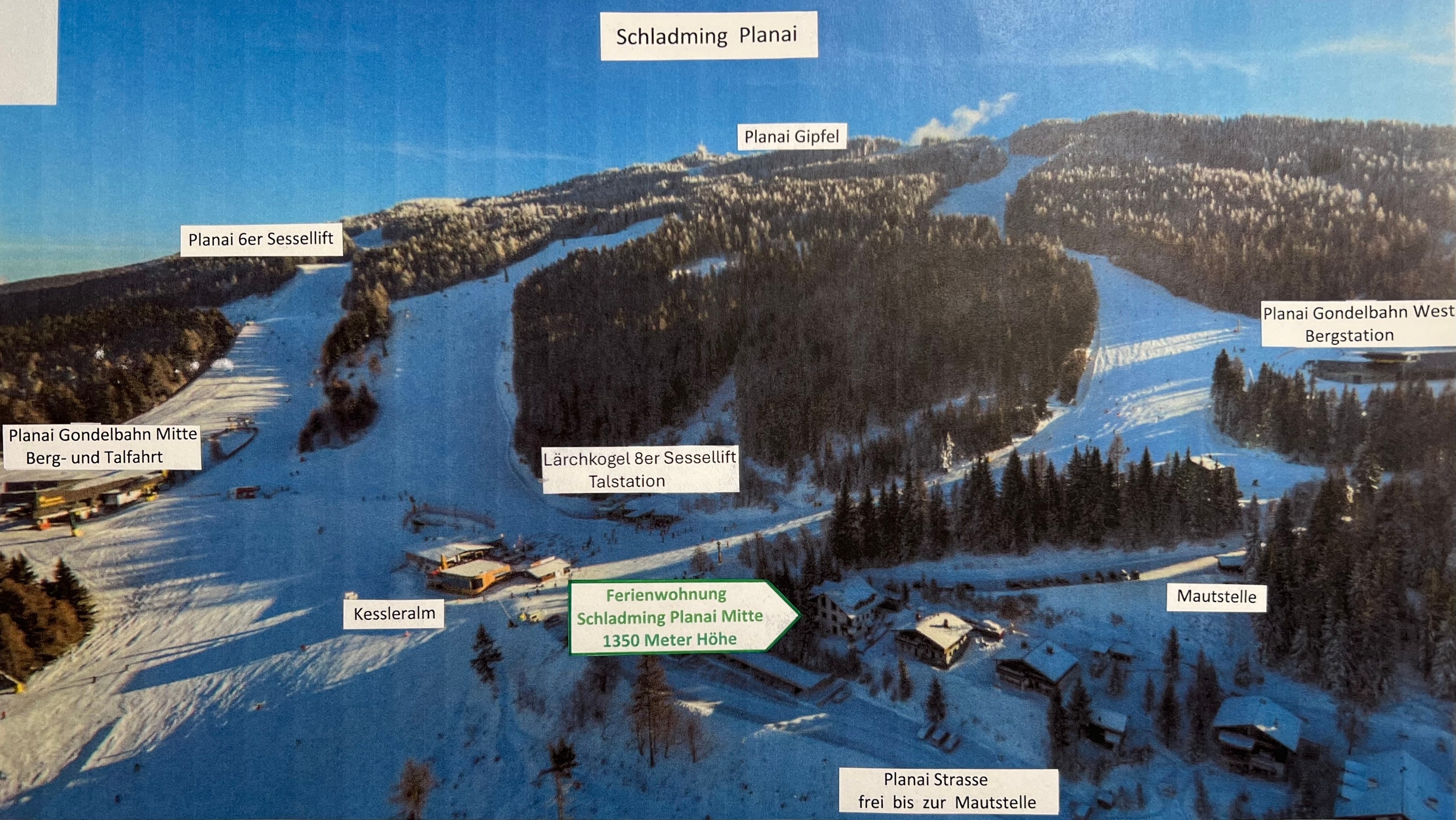 Unsere Ferienwohnung befindet sich in Schladming auf der Planai auf 1350 Meter Höhe.