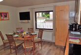 In der Wohnküche finden Sie eine große moderne Küchenzeile mit einer kompletten Ausstattung,Ceranfeld,Backofen,Kühl- Gefrierkombi,Kaffeemaschine,Toaster,Wasserkocher und Mikrowelle. Eine schöne Wohnlandschaft mit Schlafcouch ( 1,40 m breit ), einem großen Essbereich und natürlich einem Fernseher lädt zum verweilen ein.