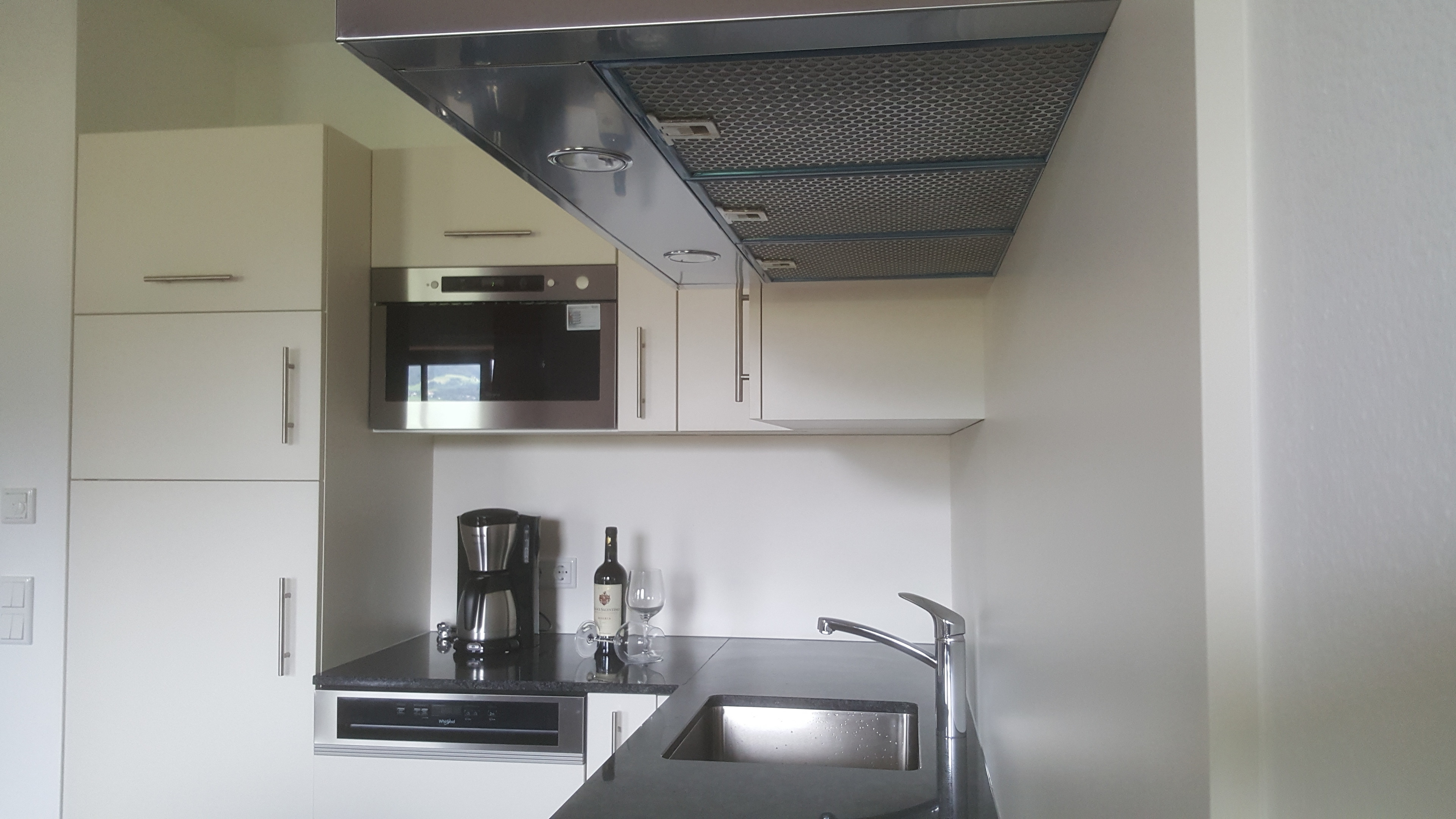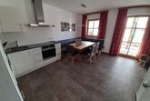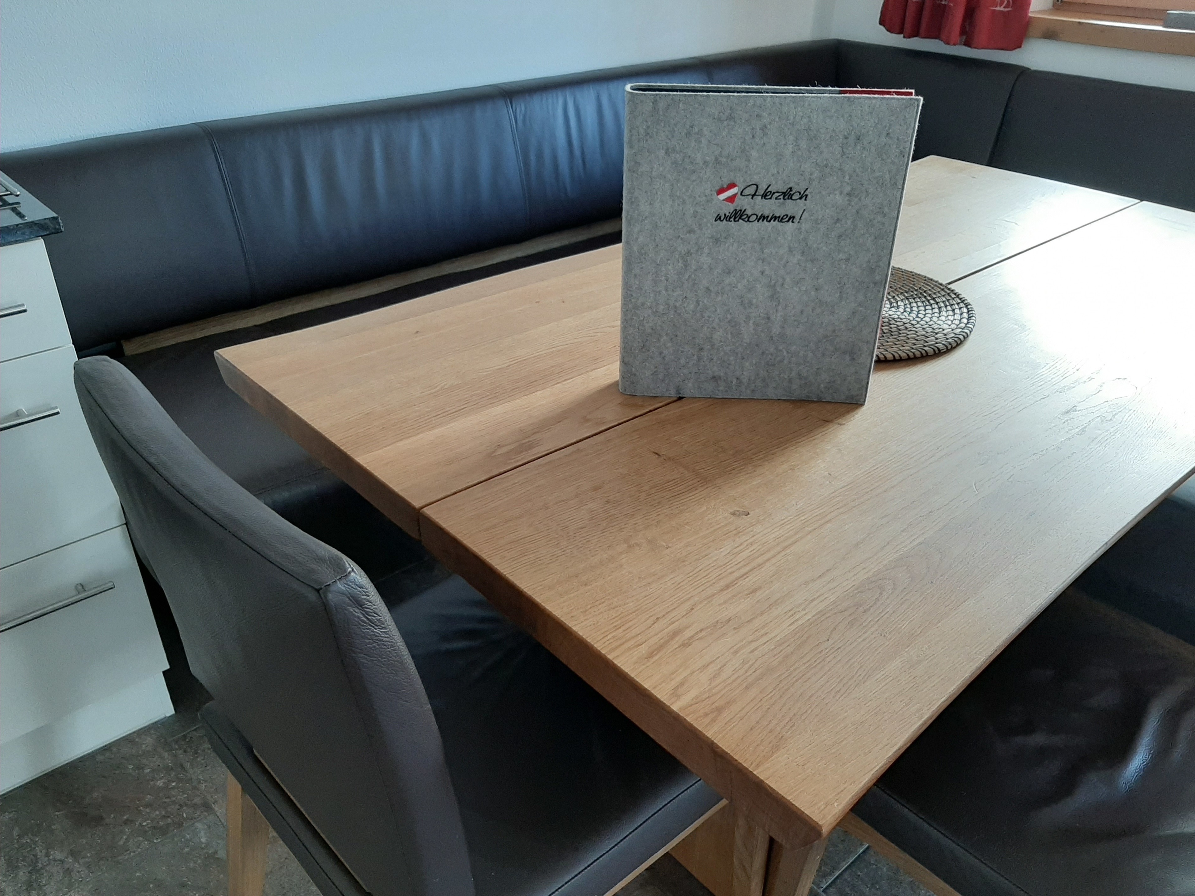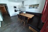 Im großzügigen Wohn-/Essbereich mit offener Küche können bis zu 8 Personen bequem auf einer modernen Eckbank und Stühlen, die mit edlem Echtleder überzogen sind, ausgiebig speisen und talken.