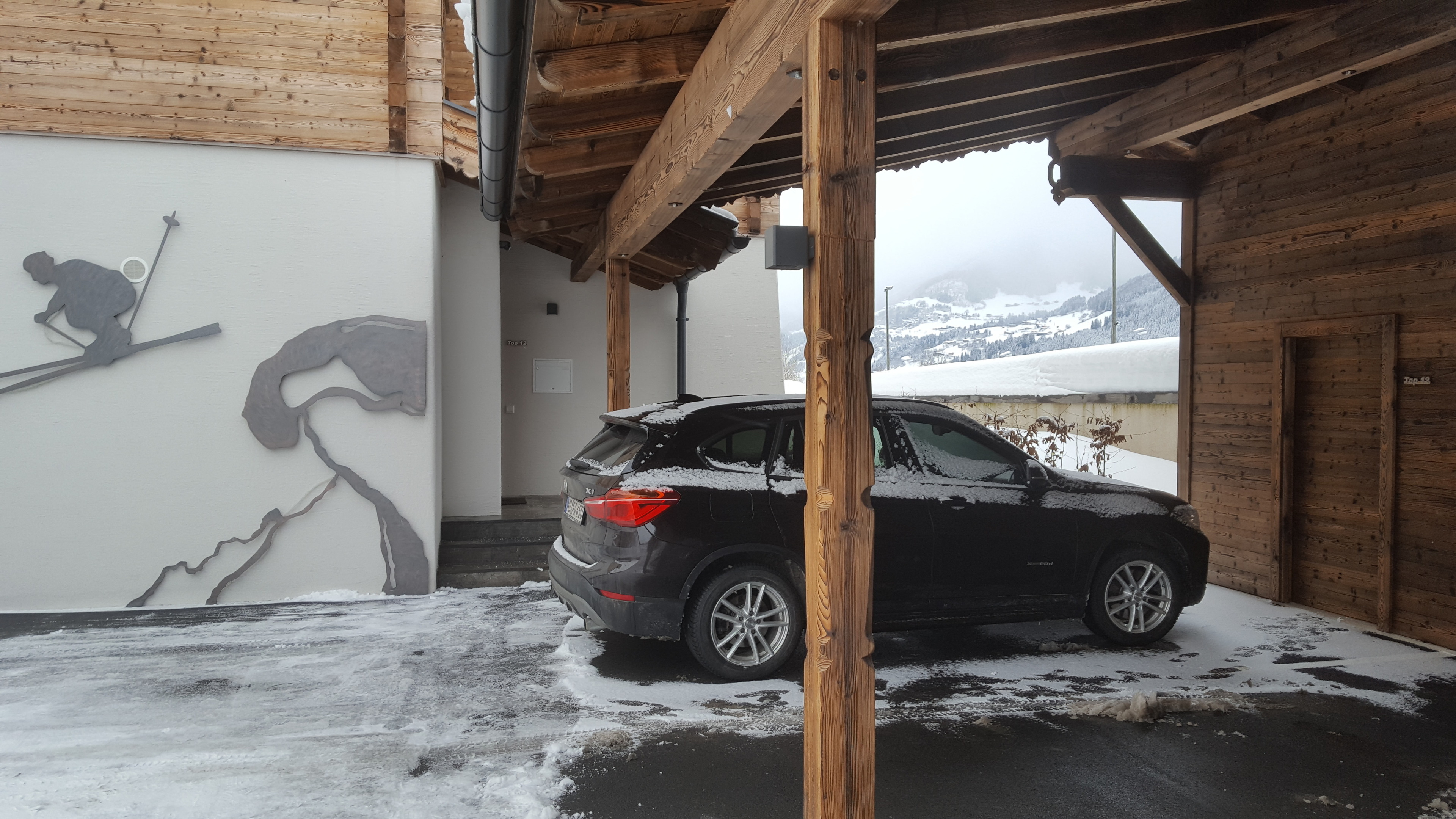 Ihr Auto parken Sie direkt vor Ihrem individuellen Eingangsbereich im überdachten Innenhof.
