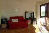 Schlafcouch für 1 Person, geschützter Balkon, Kinderbett (bei Bedarf) Unterstellmöglichkeiten für Fahrräder und Kinderwagen.