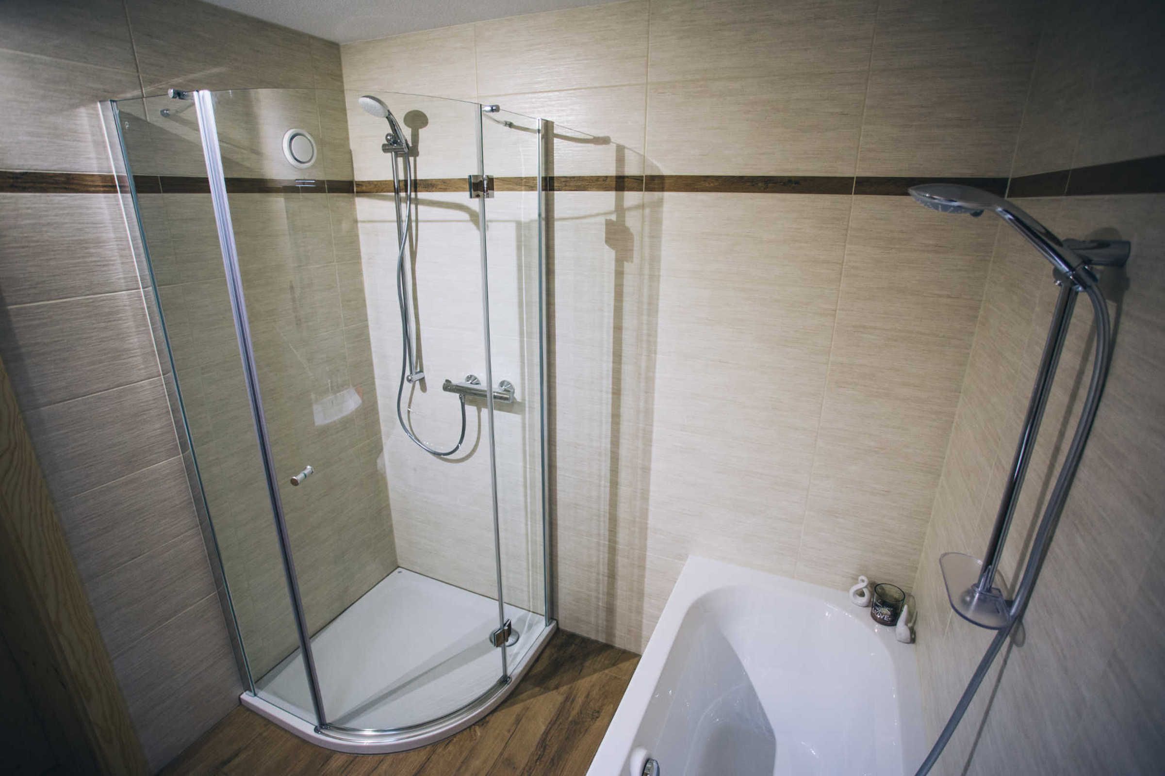 In dieser Ferienwohnung sind 2 Schlafzimmer, im Badezimmer befindet sich eine große Badewanne und eine Dusche. Das WC ist getrennt.