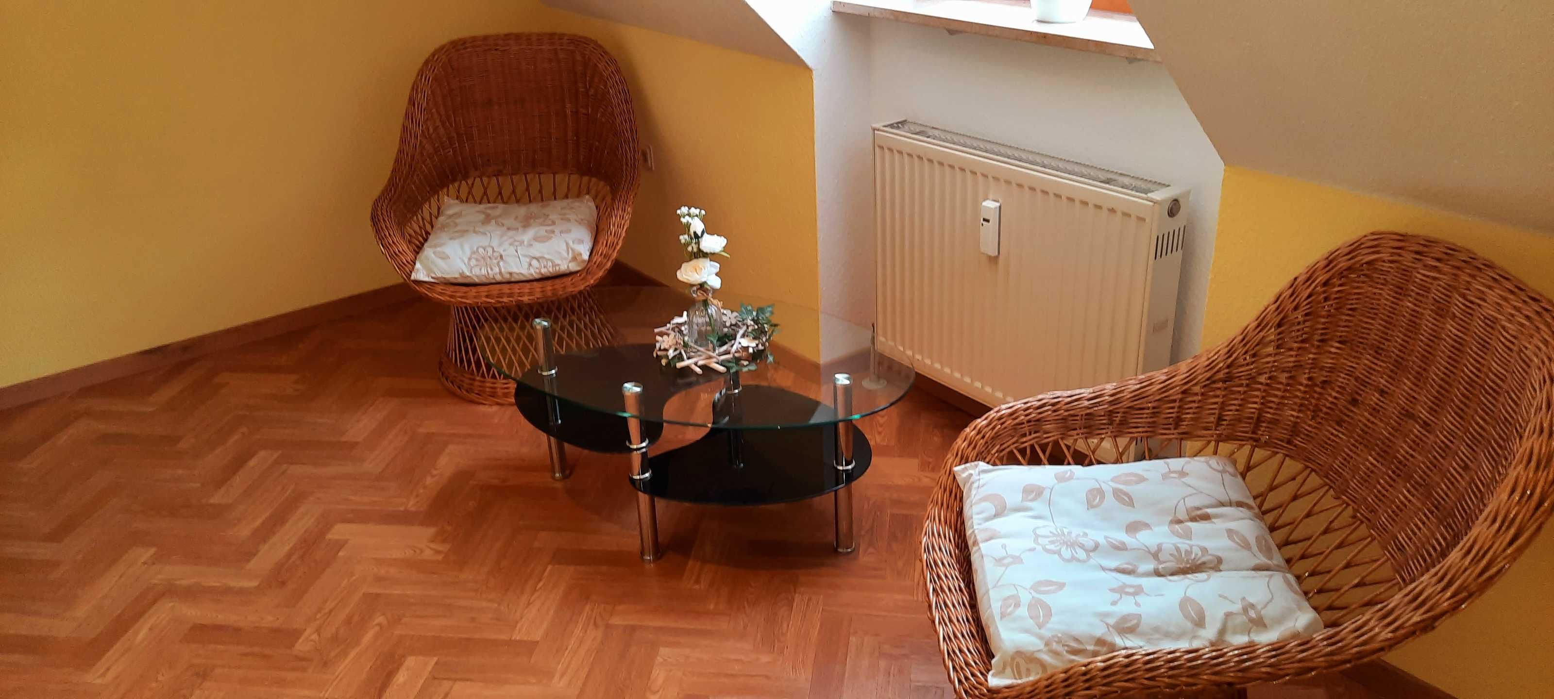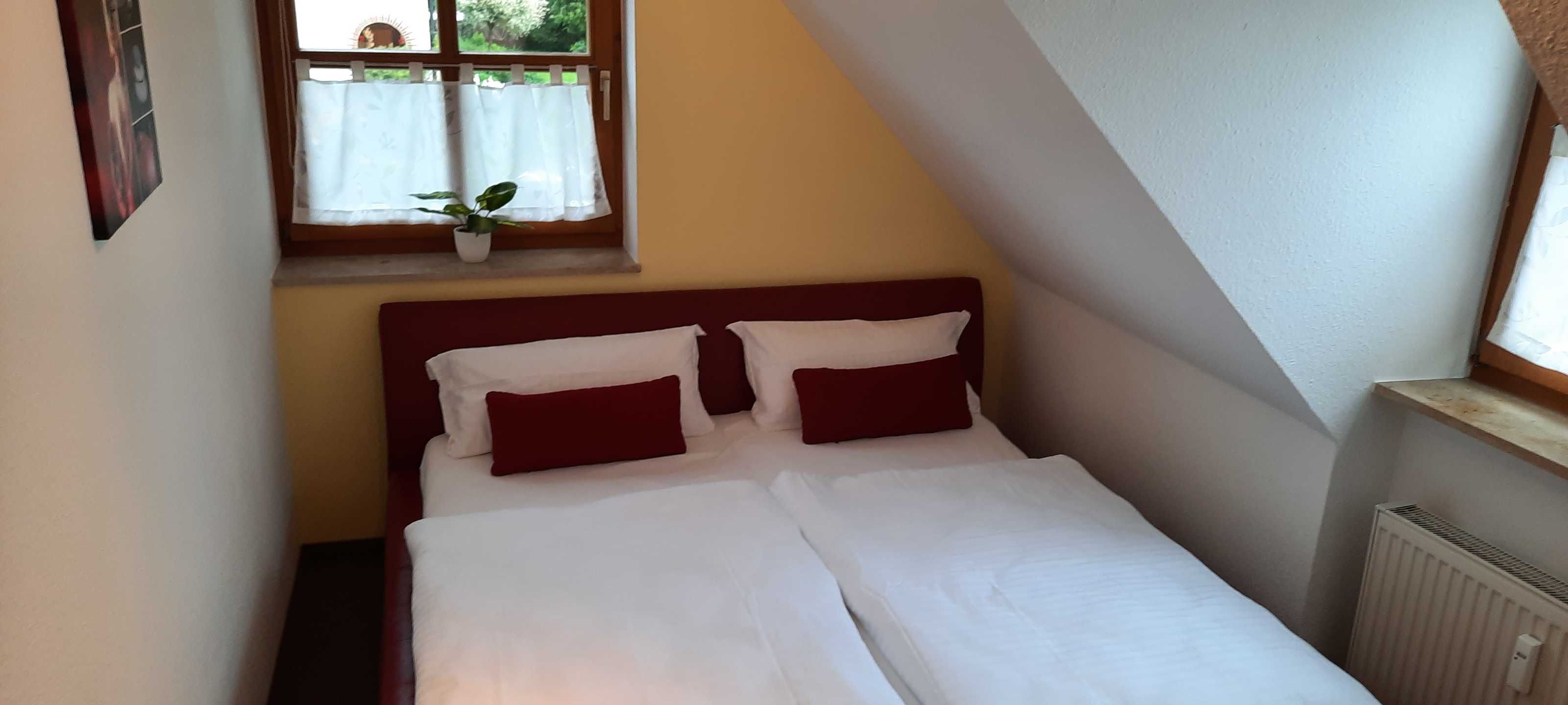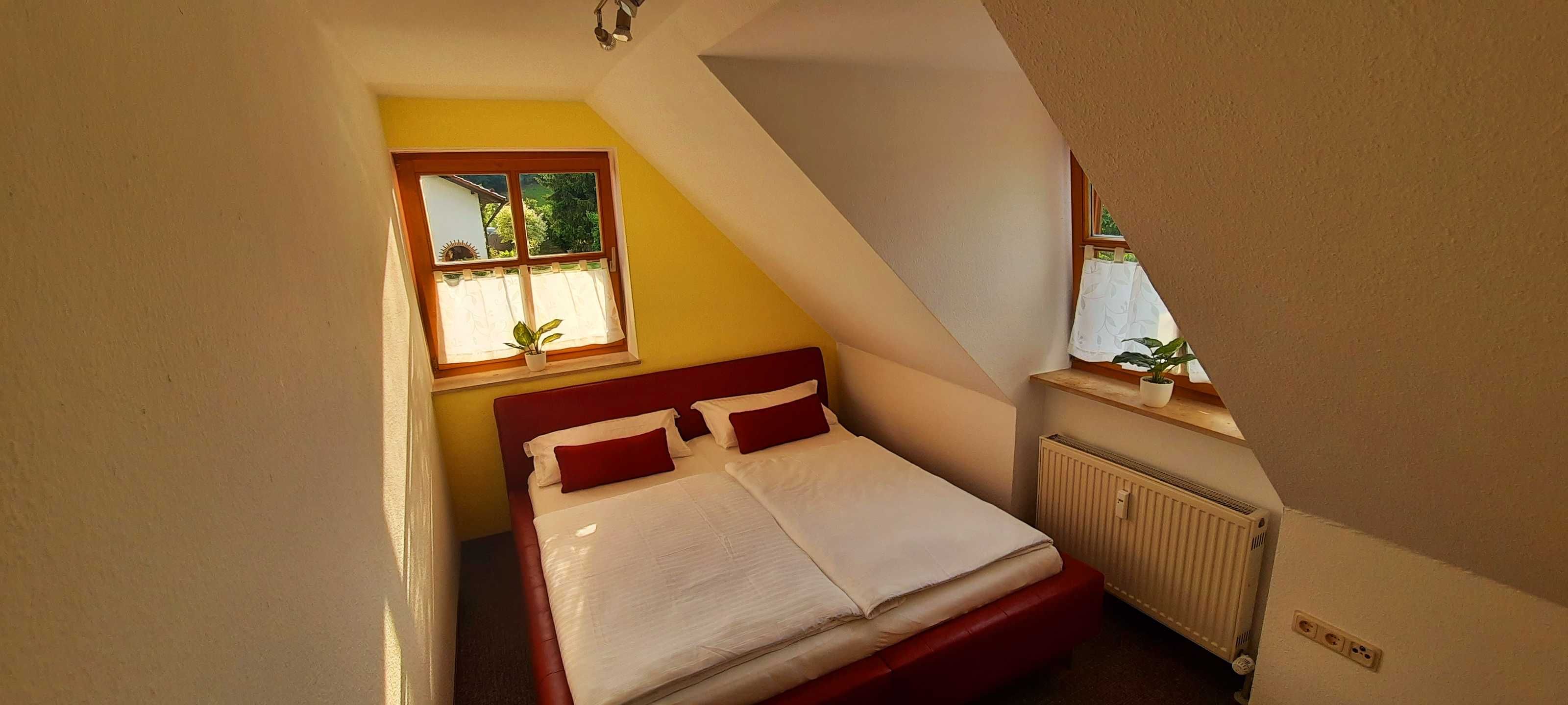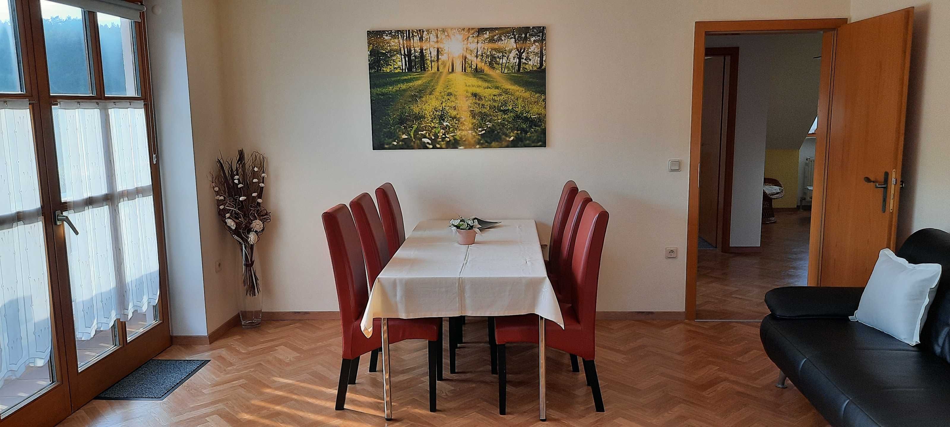 Die gemütliche komfortable eingerichtete Ferienwohnung FrankenOase besitzt einen großen Balkon, Ausrichtung nach Süden/ Westen und einen Panoramablick auf die umliegende Landschaft.