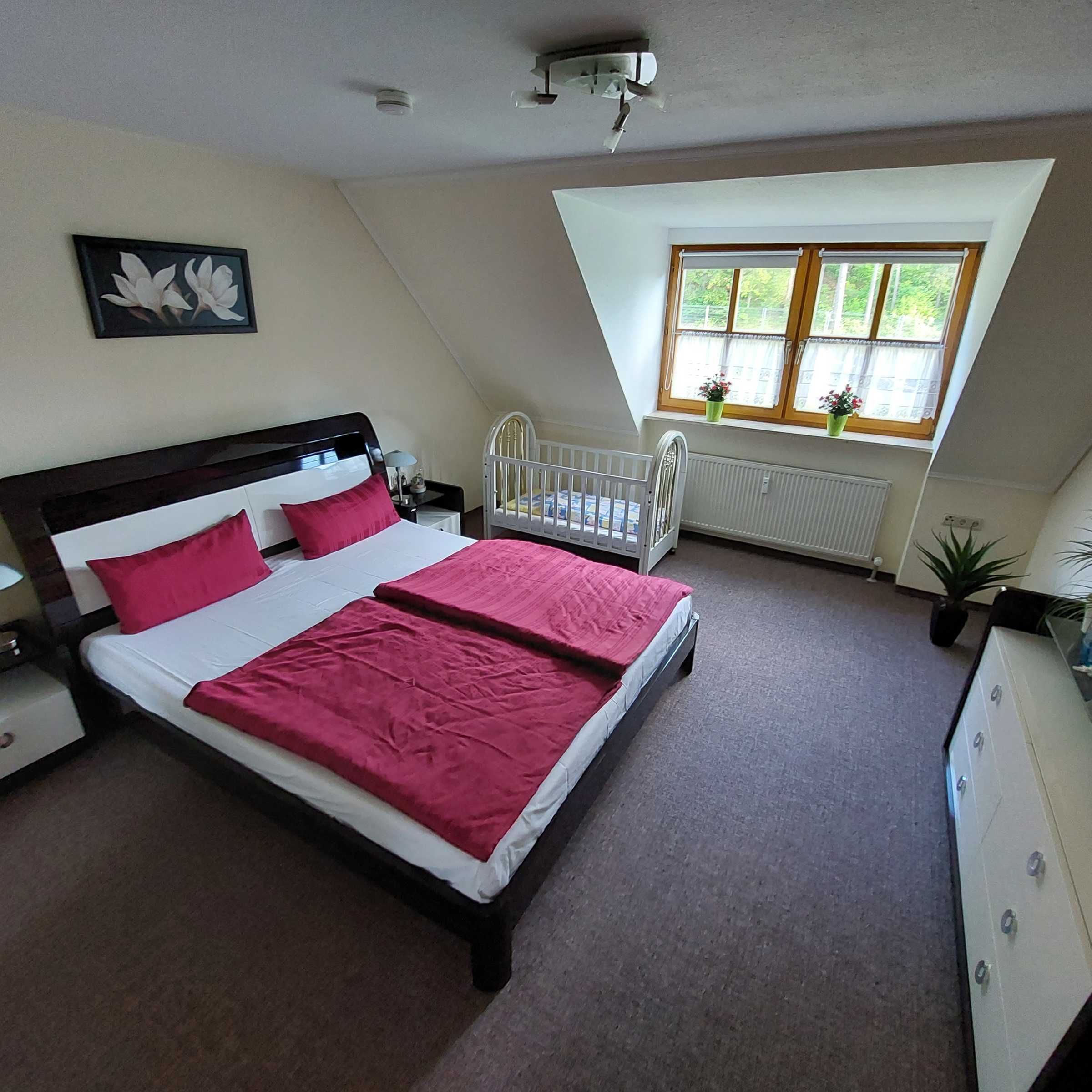 Die 85m² große Fewo liegt im 1. OG und hat Platz für bis zu 6 Erwachsene + 2 Kinder (bis 3 Jahre).