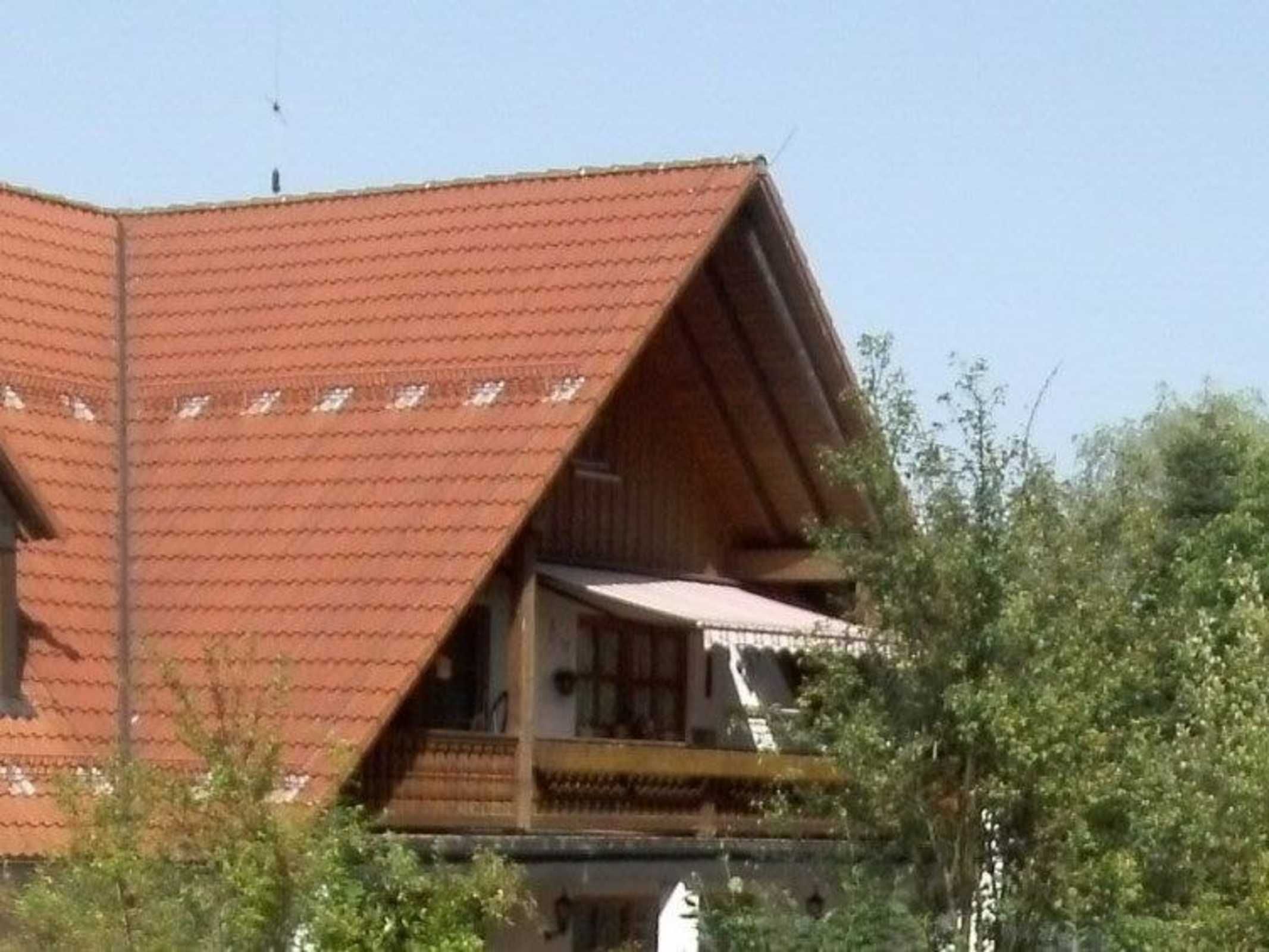Der überdachte Balkon eignet sich perfekt für die ganze Familie gemütlichen Zusammensitzen oder nur die Sonnen zu genießen.