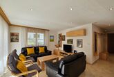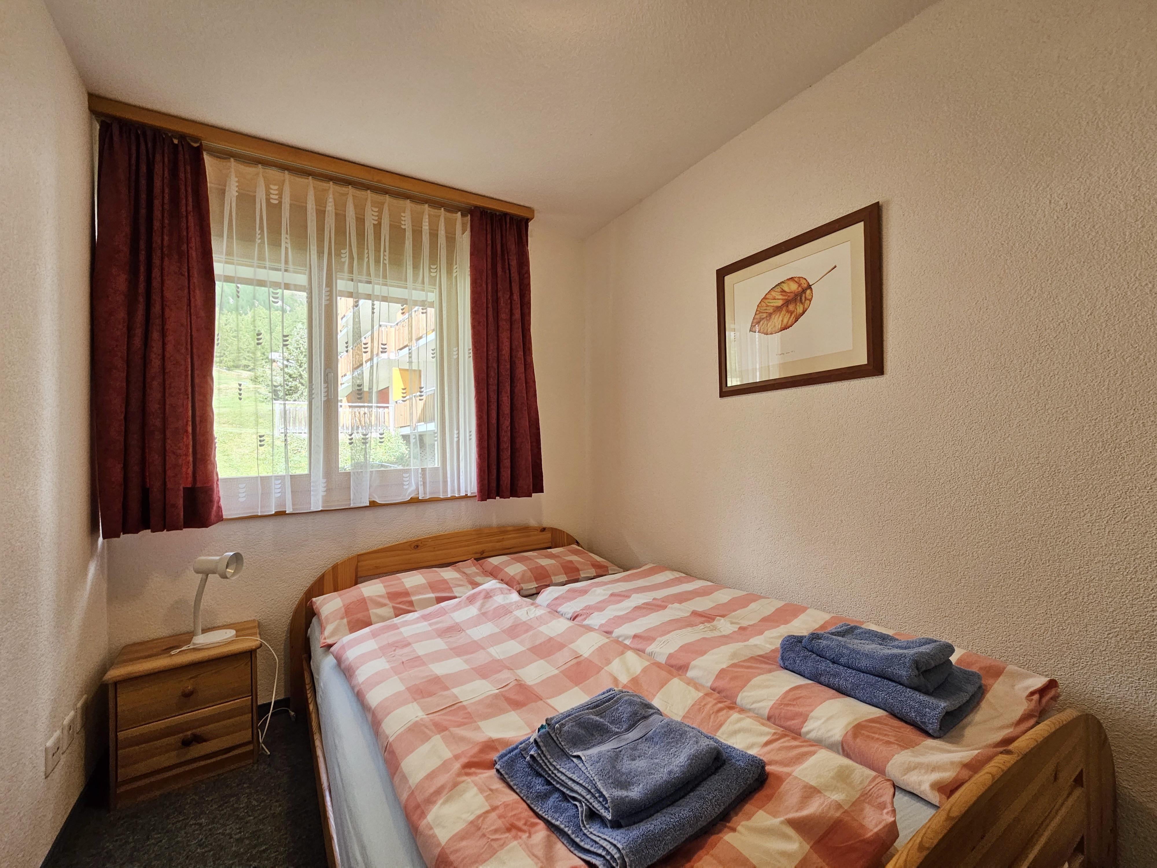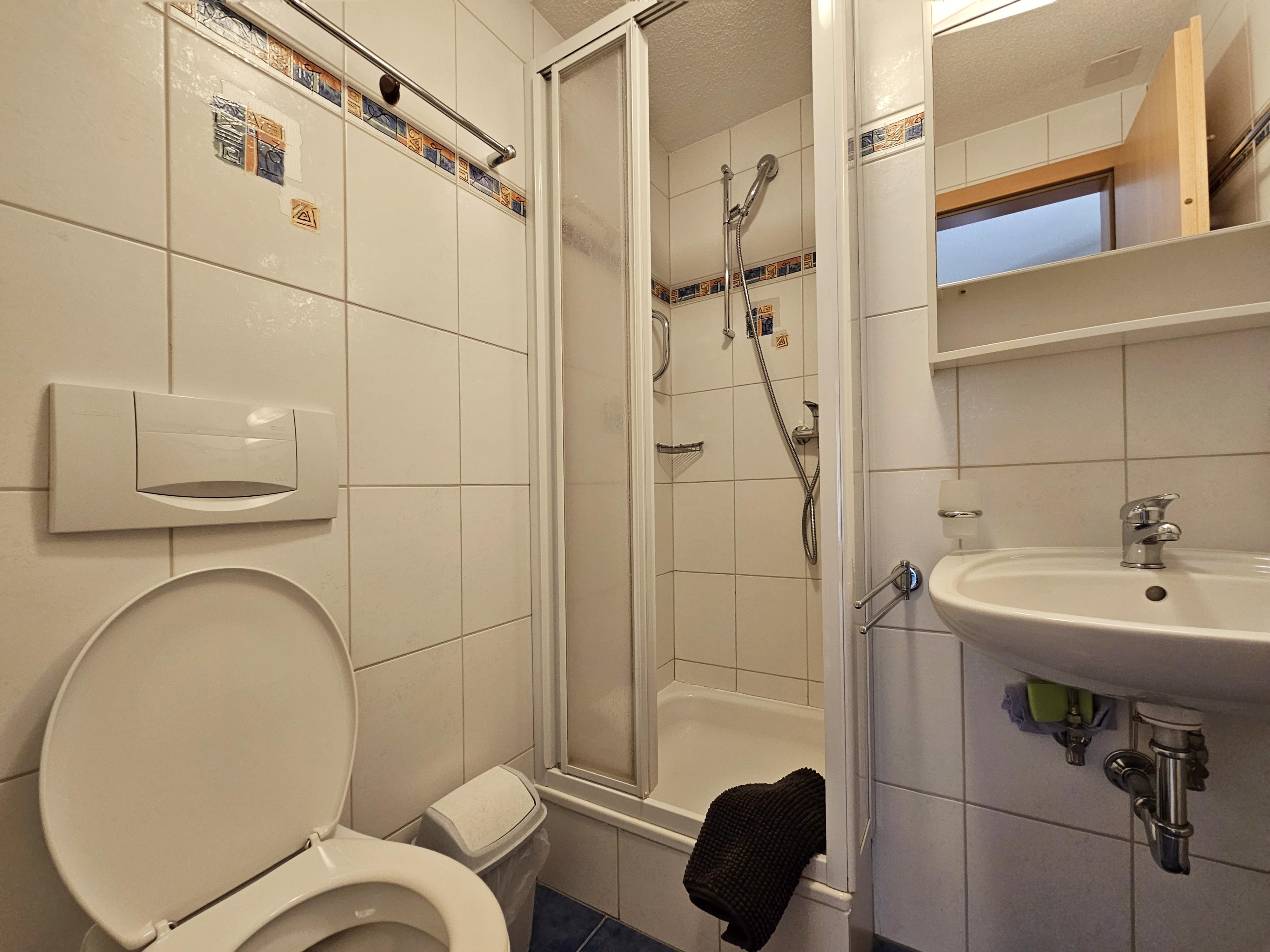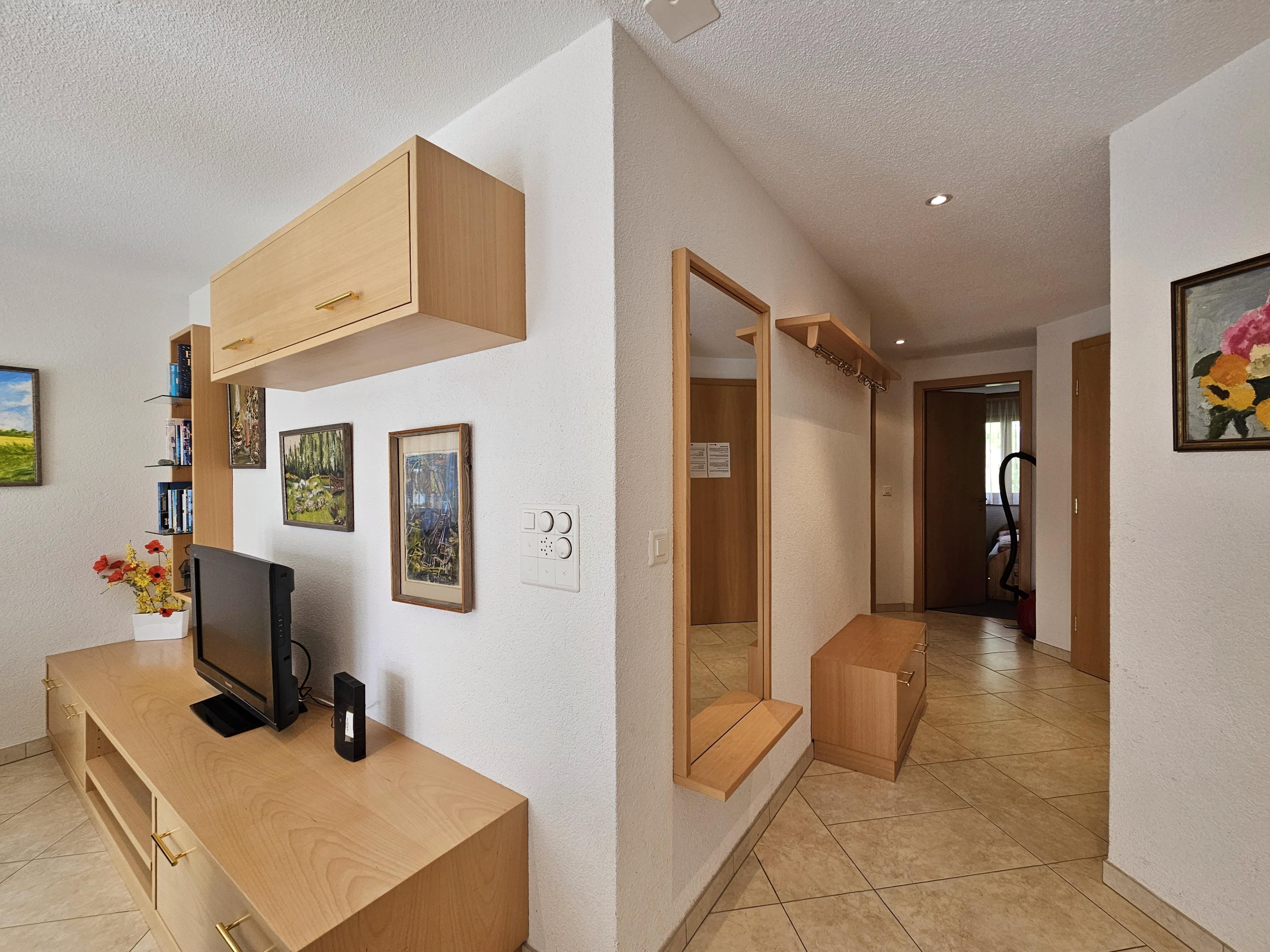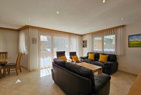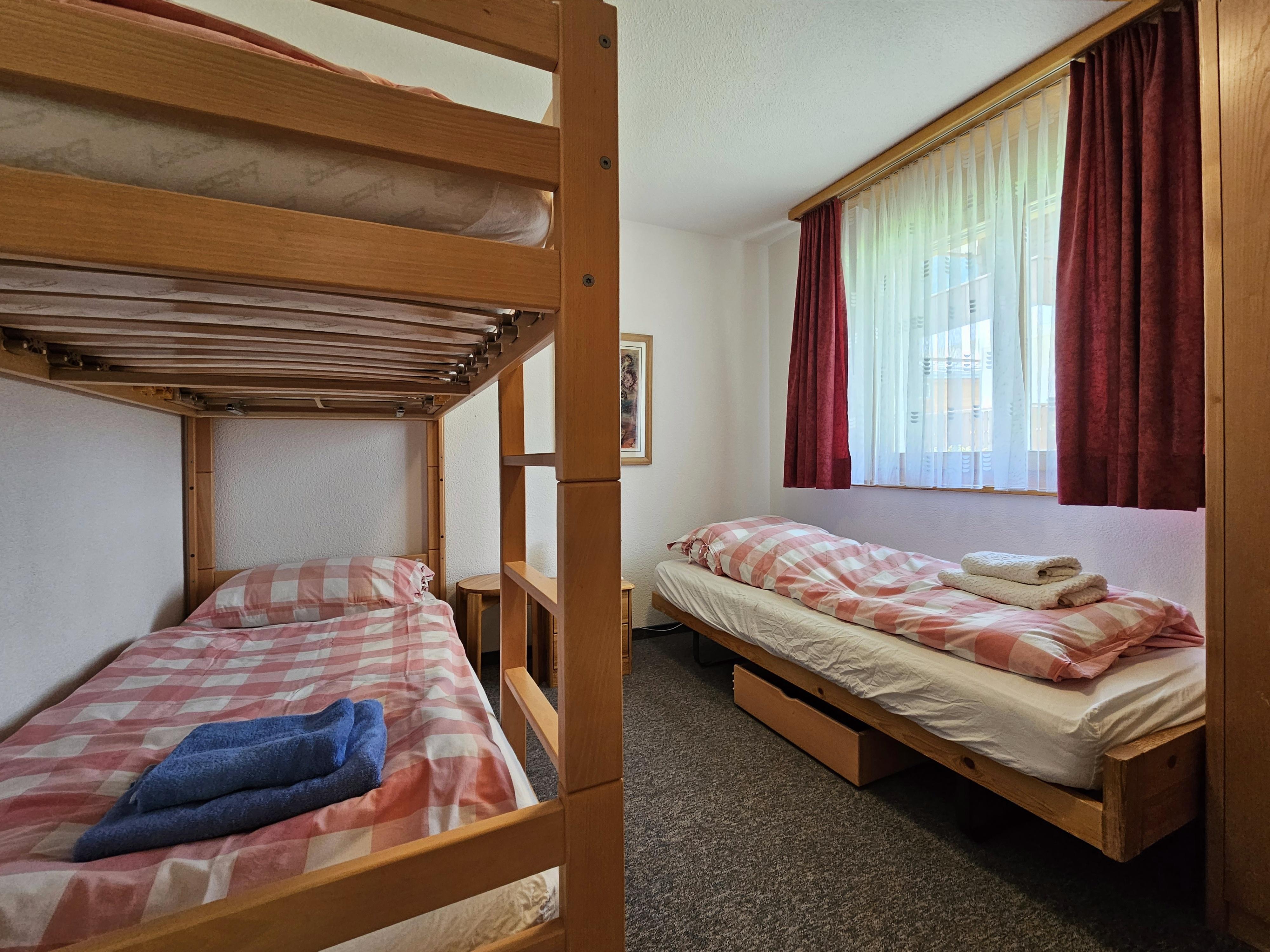 Schöne, moderne 4-Zimmerwohnung im Hochparterre. 1 Schlafzimmer mit 2 Betten, 1 Zimmer mit Doppelbett, 1 Schlafzimmer mit einem Etagen- und mit einem normalen Bett. 1x Dusche mit WC. 1x Bad mit WC. Grosszügiger Wohnraum mit offener, komplet eingerichteter Küche inkl. Geschirrspüler. Schöne Aussicht auf das Dorf und die Berge. Süd-West Balkon beim Wohnzimmer, grosser Gartensitzplatz mit Terrasse beim Schlafzimmer.