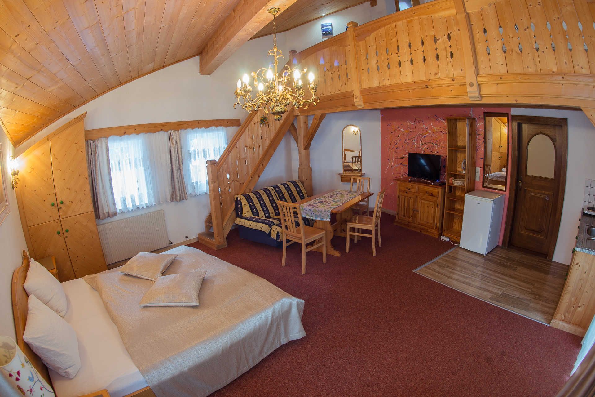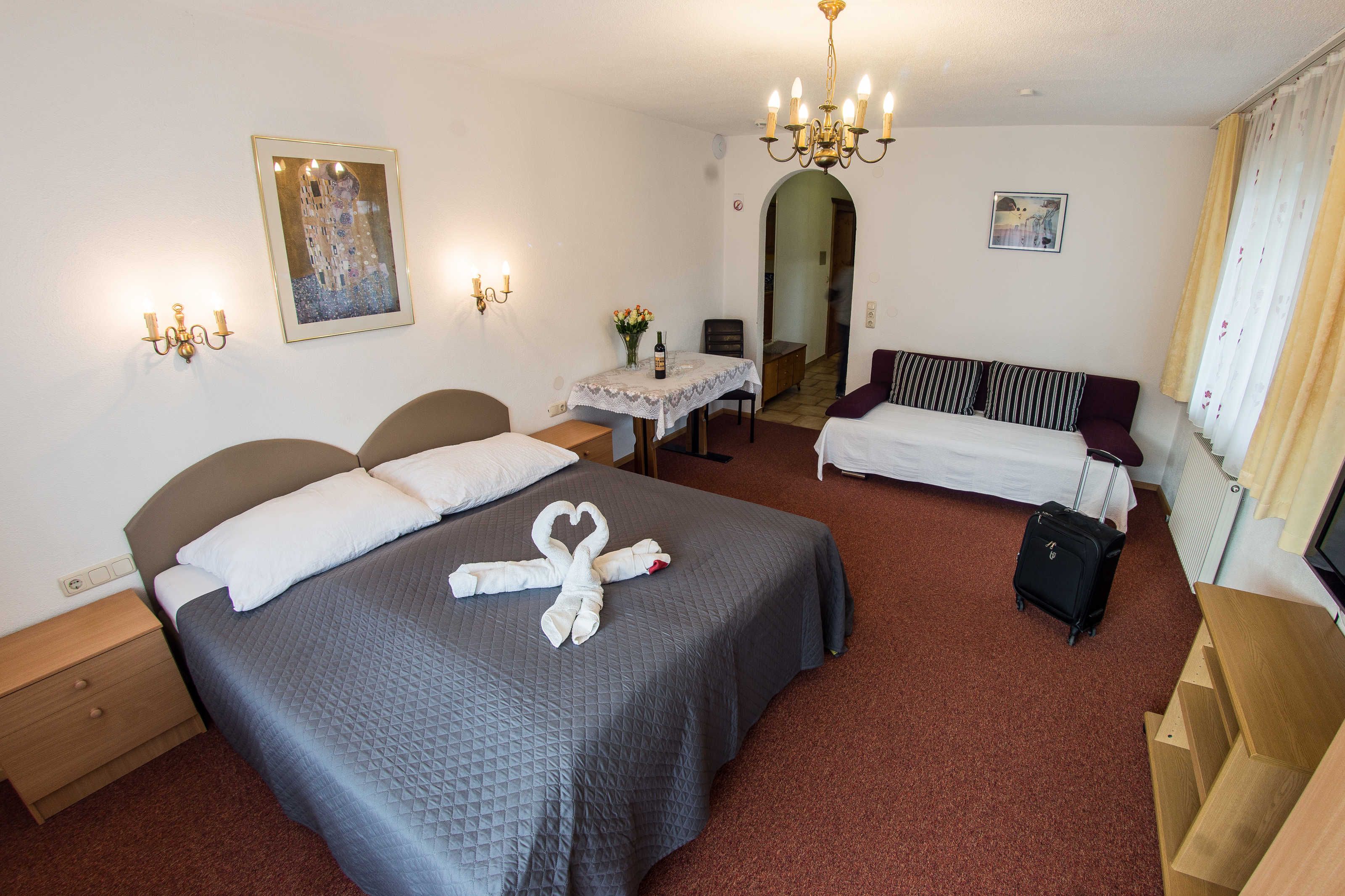 Die Ferienwohnung besteht aus einem Wohnschlafzimmer mit einer kleinen Küche. Ein Sclafzimmer und ein Wohnschlafzimmer.